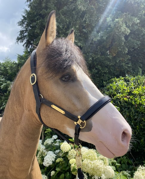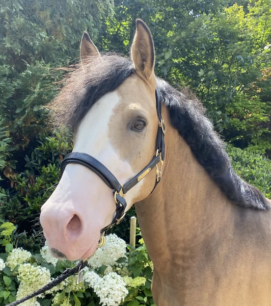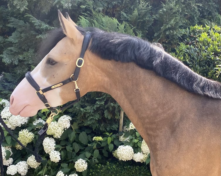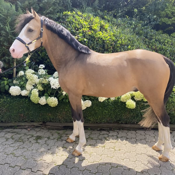 Doppelveranlagter gekörter Superstar! Zum Verkauf steht ein vielversprechender junger Deutscher Reitpony-Hengst, geboren im Jahr 2022. Im Dezember 2024 wurde Can Fly auf der Westfälischen Hauptkörung gekört. Can Fly - sein Name ist Programm. Nicht nur bildhübsch mit seiner Sonderfarbe Braunisabelfalbe (Dunskin) und seiner außergewöhnlichen Zeichnung, sondern auch mit überragenden Bewegungen ausgestattet, zieht dieser 3-jährige, gekörte Hengst, jeden in seinen Bann. Der ausdrucksstarke Hengst ist sehr gut erzogen und lässt sich problemlos auch mit Stuten in der Halle oder auf dem Außenplatz reiten. Top-Pony, auch schon von Kindern zu reiten, mit absoluter FEI-Perspektive. Bei seinem 1. Turnierstart mit einem 12 jährigen Mädchen, bei einer Reitpferdeprüfung, hat er sich vorbildlich verhalten und belegte direkt Platz 1. Aber nicht nur im Viereck, lässt dieser Hengst seine Qualität erkennen, auch beim Freispringen und bei kleineren Sprüngen unter dem Sattel zeigt er viel Talent. Mit einem Stockmaß von 148 cm ist er ideal für ambitionierte Reiter, die ein talentiertes Nachwuchspferd suchen. Sein Temperament und seine Lernbereitschaft machen ihn zu einem angenehmen Partner im täglichen Training. Er liebt es Aufmerksamkeit zu bekommen und kuschelt gerne. Wir können uns Can Fly auch sehr gut bei einem kleinen talentierten Reiter-/in vorstellen, der/die mit Unterstützung diesen besonderen Hengst zum Strahlen bringen kann. Dieser Hengst zeigt bereits jetzt vielversprechende Ansätze in der Dressur und ist bereit, weiter gefördert zu werden. Er ist gesund, gut erzogen und wartet darauf, in liebevolle und fördernde Hände abgegeben zu werden. Er lässt sich ohne Probleme in der Halle und auf dem Außenplatz mit anderen Pferden (auch Stuten) longieren oder reiten. Auch im Stall steht er zusammen mit Wallachen, Hengsten und Stuten. Can Fly macht aber nicht nur beim Reiten durch seine kooperative Art und tolle Auffassungsgabe viel Spaß, er freut sich auch über ausgiebige Putz- und Streicheleinheiten. Er ist Schmiede-/ und Verladefromm. Dieser tolle Hengst macht einfach Freude. Bei Interesse oder für weitere Informationen/Videos freuen wir uns über Ihre Kontaktaufnahme. Besichtigungen und Probereiten sind nach Absprache gerne möglich. Zusätzlich können Sie für weitere Informationen zu Can Fly die Homepage von W-Stallions besuchen. https://w-stallions.com/can-fly/ Der Hengst ist nicht das Richtige für Sie? Wir haben Ponys und Großpferde in verschiedenen Altersklassen.