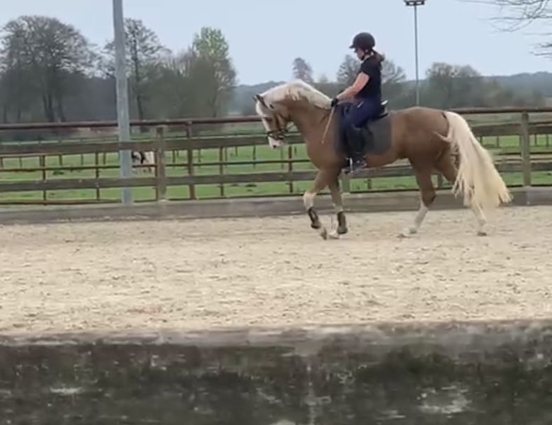 Beautiful Palomino – Treasure for Life With a heavy heart, I must part with my wonderful self-bred Palomino for personal reasons. He is a dream stallion standing at approximately 1.51 m – his golden color attracts all eyes. He is 4 years old and has been started under saddle. His lineage includes Reitlands Diamonds Gold x Trussardi x Halifax. His mother is a very nice pony mare, who is now winning E/A show jumping competitions with a young girl and has a lot of fun in eventing. ✨ Character: He is incredibly sweet to handle, people-oriented, and uncomplicated. Whether grooming, leading, or with the farrier – he cooperates well and always shows a friendly demeanor. Behavior: • Currently kept in a box • Compatible with geldings • Completely unproblematic with mares in the walker, next to the paddock, or in the neighboring box This Palomino is not only a visual highlight but also impresses with his wonderful character. He has everything it takes to become a loyal partner for life – whether in leisure or as a future all-rounder. Not for resale! Only to the very best and loving hands. ❤️ Please only complete inquiries; others will not be answered. Videos available via WhatsApp. No direct inquiries regarding price or health – he is in perfect health! A fee is charged for trial riding to prevent riding tourism.