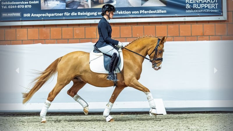 Terence Hill został zarejestrowany w 2024 roku w Verden podczas przeglądu hodowlanego i już w swoim pierwszym sezonie startowym pod siodłem wywarł duże wrażenie. W konkursach ujeżdżeniowych wielokrotnie zdobywał miejsca na podium, odniósł już zwycięstwa i tym samym wczesnym wieku pokazuje swój sportowy potencjał – zgodnie z sukcesami linii jego ojca. Ojciec, Top Champion, odnosi sukcesy w turniejach aż do klasy S w ujeżdżeniu i jest prezentowany przez swoją jeźdźczynią, Gretę Kühnhenrich. Zaangażowanie, skoczność i jakość są więc mocno zakorzenione w jego rodowodzie. Również linia matczyna nie zawodzi: Terence Hill pochodzi z wybitnej, sportowo ukształtowanej linii matczynej. Jego matka, Navaja, wydała już wiele sportowo odnoszących sukcesy potomków, którzy odnoszą sukcesy aż do klasy L w turniejach. Szczególnie warto wyróżnić jej córkę, Chicke Deern NRW, która w 2019 roku pod Anna Lena Schaaf wygrała Mistrzostwa Federalne w Warendorf. Z babki, Luny, pochodzą trzy zarejestrowane konie oraz cztery córki z prestiżem. Jej potomstwo również odznacza się sukcesami sportowymi, w tym Novecento, który osiągnął sukcesy aż do klasy M w skokach przez przeszkody. Wszystkie dodatkowe informacje dostępne tutaj: https://auction.pferdezucht-rheinland.de/auctions/df7dab23-9e97-425e-159a-08de37f66d98/item-details/ba2eb591-cfab-48e0-7eb1-08de414ebd33