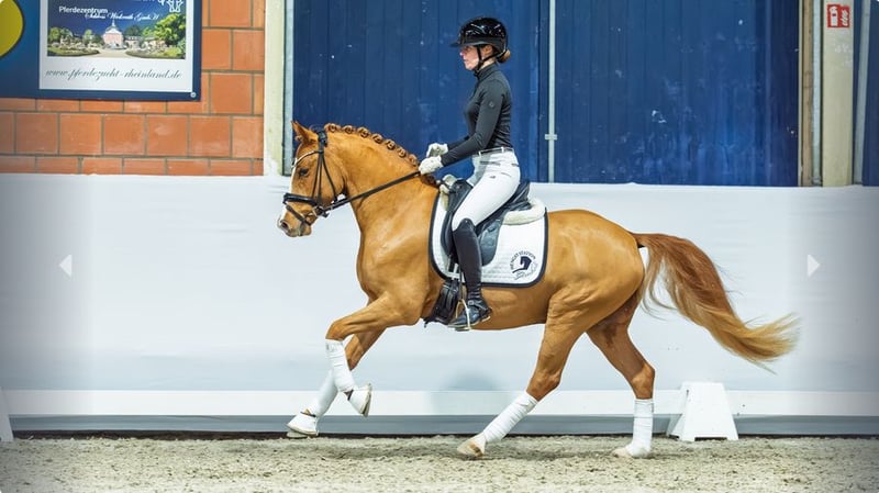 Diamante Mio G already made a strong impression at the 2024 licensing in Münster-Handorf, receiving an entirely positive approval. He is sired by the proven Damaszener K WE, who finished fourth in the final of the four-year-old riding pony stallions at the 2022 Bundeschampionat in Warendorf under Jaqueline Schurf. The dam line also demonstrates exceptional performance potential and high breeding value. His dam, Djamina Mia, is classified as an Elite mare and a State Premium mare. She completed her mare performance test in Bedburg in 2015 with a convincing final score of 8.3. She already boasts a notable progeny: three licensed sons and two premium mares, underscoring her significant breeding merit. Several of her offspring are also successful in sport. Of particular note is Despacita Mia NRW (by Dreiklang AT), who has achieved considerable success in dressage up to the advanced (Grand Prix) level. The granddam, Lilofee, further cements the outstanding reputation of this lineage: two of her descendants compete successfully up to M-level in dressage at competitions. This line has also produced important breeding achievements, including a State Premium mare and an Elite State Premium mare. A pedigree that combines athletic performance potential with top-tier breeding quality. All further information here: https://auction.pferdezucht-rheinland.de/auctions/df7dab23-9e97-425e-159a-08de37f66d98/item-details/8fd86fa3-8161-4256-7eb5-08de414ebd33