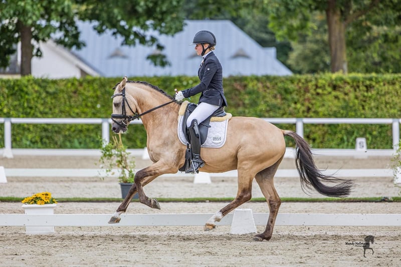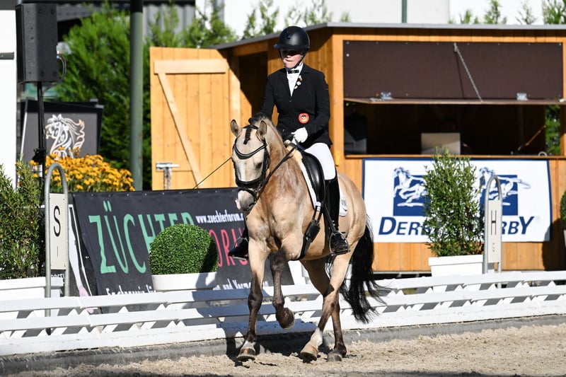 **Sales Advertisement: German Riding Pony Stallion** For sale is a beautiful German Riding Pony stallion, born in 2019. With his striking buckskin coat and a height of 14.2 hh, he is not only a real eye-catcher but also a talented partner for dressage. This stallion impresses with his excellent movements and eagerness to learn. He is well-mannered, well-educated, and shows great potential for dressage sport. Ideal for ambitious riders looking for a reliable and talented pony. www.gestuet-boenniger.de He is suitable for both recreational riding and competition and is ready to start his journey with a new rider. If you are interested or need more information, please feel free to contact me. Viewings are possible by appointment. We look forward to your inquiry!