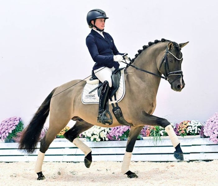 Gekörter Spitzenhengst aus der Weser-Ems-Zucht mit großartigen Turniererfolgen, M-siegreich, zum sofortigen Durchstarten. Mutter Diva Donella WE rangierte auf dem Brillantring in Weser-Ems auf der Id-Position und war selbst im Sport erfolgreich.