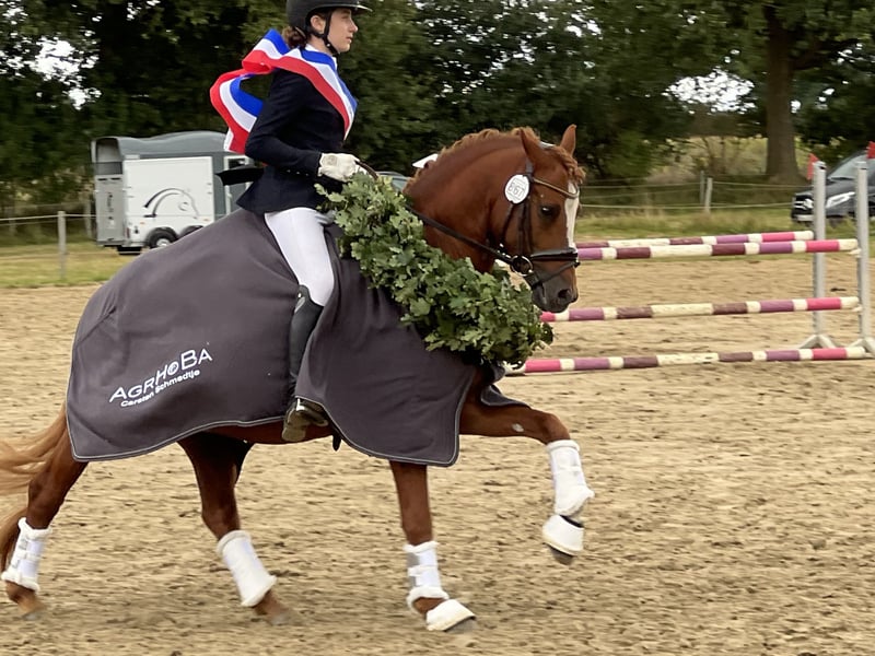 🌟 Südpfalz Diamant – a Hearthorse with Charisma, Talent, and Reliability! 🌟 Breed: German Riding Pony Gender: Stallion (licensed) Year of Birth: 2018 Height: Color: Chestnut Location: 24819 Todenbüttel ⸻ Südpfalz Diamant is a riding pony stallion that truly lives up to his name – a genuine diamond! He captivates with his stunning appearance, friendly personality, and impressive willingness to perform. ✨ Character & Training Since the age of 4, “Diamant” has been lovingly and consistently ridden and promoted by a junior rider. He consistently proves to be reliable, well-trained, and motivated – a partner you can always count on. Whether at competitions or during training at home: he always wants to please and works with a wonderful temperament. Whether in dressage, jumping, or hacking out in the fields, he is always easy and well-behaved in handling. He lives nearby my mares and foals and is always cooperative and well-mannered. ✨ Performance & Quality In 2022, he completed his 30-day stallion performance test in Neustadt/Dosse with an excellent overall score of 8.18 (4th place out of 26). His top scores speak for themselves: • Interior: 8.83 • Trot: 8.75 • Rideability: 8.50 He impresses with his strong character, relaxation, and absolute riding quality. In sport, Südpfalz Diamant has been victorious and placed multiple times up to L-level dressage, continually demonstrating his talent and composure. ✨ Pedigree & Future Prospects Sired by Diamond Touch – Der Harlekin B – Diddi Keeps Cool NRW, he combines proven performance genetics with modern riding pony elegance. Whether for dressage, high-level leisure riding, or as a valuable addition to a breeding program – this stallion is an exceptional horse with a bright future! ⸻ ❤️ Südpfalz Diamant – charming, strong character, and eager to perform. A pony that wins hearts and impresses across the board. 📹 Videos, more information, and competition records available upon request.