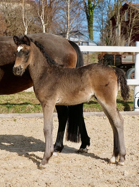 Knusperkeks ist ein Ponyfohlenhengst der im Maß bleiben wird. Er überzügt jetzt schon mit seinem tollen und kinderlieben Charakter. Ein Pony das mit sehr guten Grundgangarten ausgestattet ist und die Mutterlinie durch absolute Rittigkeit überzeugt. Durch seinen Vater ist der doppelt veranlagt. Knusperkeks wird das perfekte Allrounderpony für ihr Kind.