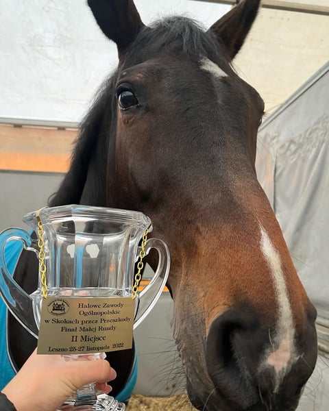 He was a schoolmaster for a 15 year old girl to teach her from 110cm classes and many 120 clear round classes. Together they won many medals in 120, 125, 130 classes then moved up to the 135 and 140 classes in Poland. One time took 3rd place in a national 140 Grand Prix.