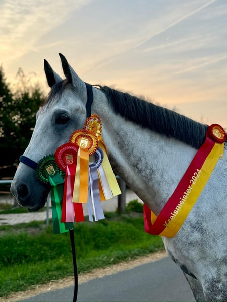 Unser Schimmel-Wallach Ludo ist ein 11- jähriges Deutsches Sportpferd abstammend von Lorano x Lamborghini. Er ist im Springen bis M** vorgestellt und hat im vergangenen Jahr 2025 M* gewonnen. Ebenfalls wurde er von einer Amateur-Reiterin kontinuierlich in Klasse A und L erfolgreich vorgestellt. Zuhause ist er super unkompliziert und ein wahrer Schatz. Ob Dressur, Springen oder lockere Ausritte oder einfach mal ein entspannter Tag mit ganz viel betüddeln- mit Ludo hast du einen Kumpel für alles. Auch im Umgang gibt es nichts zu bemängeln. Er freut sich wenn du ihn aus der Box holst und man sich mit ihm beschäftigt und weist keinerlei Unarten vor. Auch mit Kindern ist er total Lieb und vorsichtig. Wir wünschen uns für ihn ein 5 Sterne Zuhause, in dem er sowohl als Sportpartner, als Lehrmeister und vor allem als Familienmitglied glänzen kann. Er kennt Boxen und Paddock, sowie auch Koppel. Ebenfalls ist er auch Schmiede und Verladefromm (egal ob LKW oder Anhänger) Preisklasse 20-25🥕🥕🥕vb