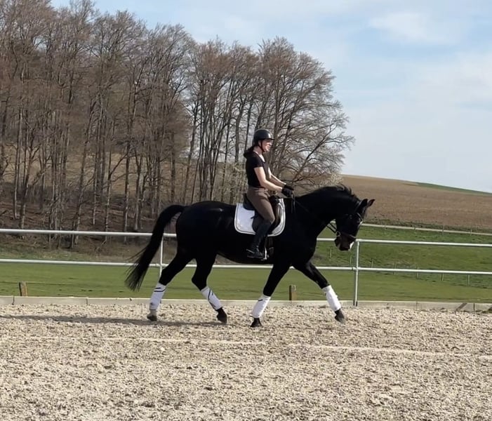 Zum Verkauf steht mein 11-jähriger Wallach Daramis von Diatano • Glock‘s Johnson TN. „Dari“ ist super schick, leichtrittig, fein an den Hilfen und immer motiviert bei der täglichen Arbeit. Egal ob Halle oder Platz weiß er sich stets zu benehmen und besticht mit seinem ausgeglichenen und nervenstarken Charakter. Er ist seit er 5-jährig ist in meinem Besitz und wurde von mir selbst ausgebildet. 6-jährig wurde er 2 mal auf dem Turnier vorgestellt (Dressurpferde A platziert), dies wurde aber nicht weiter gefördert, da ich selber keinerlei Turnierambitionen habe. Ich war mit ihm regelmäßig im Unterricht und auf Lehrgängen unterwegs. Er ist extrem menschenbezogen, hat keinerlei Unarten, versteht sich super in der Herde, kennt Kinder, Hunde, etc… seit er in meinem Besitz ist hatte er noch nie ernsthafte Verletzungen, bei mir läuft er barfuß und wurde regelmäßig geimpft. Er ist sehr fein zu reiten, will immer alles richtig machen und macht seinem Reiter täglich Freude. Er ist auf sicherem L Niveau, einzelne M Lektionen beherrscht er ebenfalls, ich würde mir für ihn einen ambitionierten Reiter auf mindestens A Niveau wünschen, der ihn weiter fördern kann. Der Verkauf erfolgt aufgrund von Aufgabe des Reitsports und nur in allerbeste Hände!! Zubehör kann bei Interesse miterworben werden.