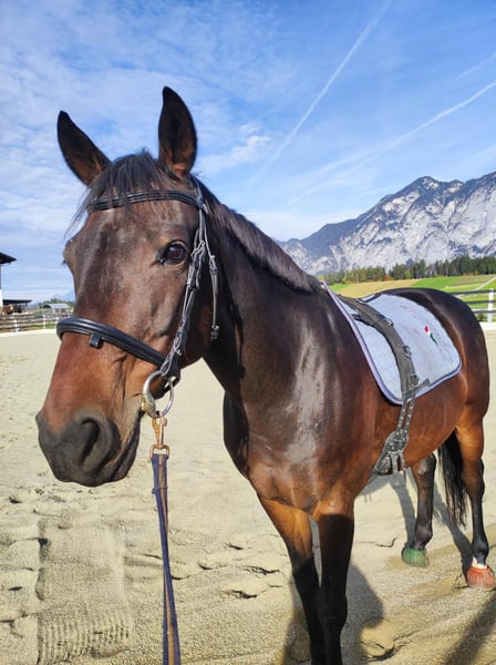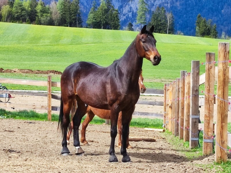 Mein Fredi sucht einen neuen Möhrchengeber. Du suchst ein arbeitswilliges Dressur- und Freizeitpferd? Dann wäre Fredi genau der Richtige für Dich. Er ist ein absolut lieber Kerl, der jedem gefallen möchte. Im täglichen Umgang ist Fredi unkompliziert und lässt sich sowohl vom Besitzer als auch von fremden Personen (z.B. Stallbetreiber) leicht händeln. - er geht sowohl alleine als auch in der Gruppe problemlos vom Hof, lässt sich auch gut von der Koppel holen (selbst, wenn die anderen Pferde noch dort sind) und kennt keine Unarten wie Beißen, Schlagen oder Treten. - er ist verlade- und schmiedefromm - er kennt sowohl Offenstall als auch Pensionsstall, abends braucht er aber auf alle Fälle eine Box als Rückzugsmöglichkeit -Fredi ist absolut herdenverträglich und stand bisher immer in einer gemischten Herde (eher rangniedrig) -Fredi wohnt aktuell auf einem Bauernhof, daher sind große Maschinen und laute Geräusche ebenso kein Problem für ihn. -Er nimmt sein komplettes Zubehör mit ins neue Zuhause (inkl. Sattel, Decken und Inhalator) Was braucht Fredi? - WICHTIG: Fredi ist ein Pferd, das regelmäßig gearbeitet werden möchte und gefordert werden muss. Abwechslung ist bei ihm besonders wichtig. Du solltest also nicht nur Interesse an der Dressur, sondern auch an Ausritten, Spaziergängen und Bodenarbeit haben, um ihm das optimale Ausmaß an Abwechslung bieten zu können. - Fredi ist kein Anfängerpferd und braucht einen sicheren sowie erfahrenen Reiter. Gibst du ihm aber die nötige Sicherheit vom Sattel aus, hast du einen verlässlichen Sportpartner an deiner Seite. Dann macht vor allem die Arbeit im Gelände sehr viel Spaß mit ihm. Bei der Arbeit vom Boden aus, zeigt er sich lernwillig und fleißig Fredis Baustellen: - Fredi hat leider leichtes Asthma, dass ihn aber in seiner Leistung nicht beeinträchtigt und mit gutem Futter und regelmäßiger Inhalation sehr gut zu bewältigen ist. - Fredi wurde von mir als Kopper gekauft. Dieses Verhalten hat seit der Umstellung in den Offenstall stark nachgelassen, zeigt sich aber dennoch manchmal. Du hast Interesse Fredi kennenzulernen? Dann melde dich doch bitte per Whatsapp bei mir. Wir freuen uns von dir zu hören. 06503702876