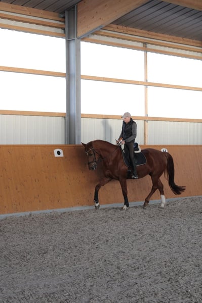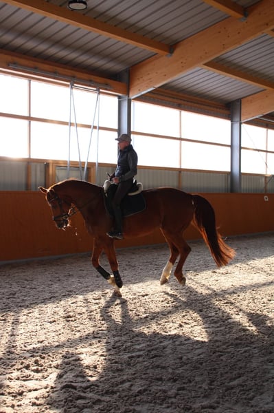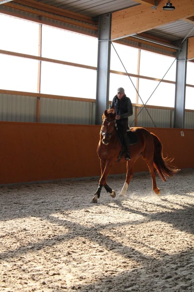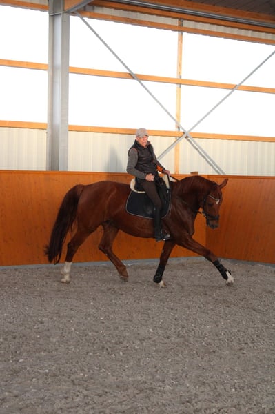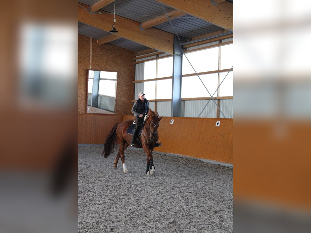 Z powodu zmniejszenia stada, niestety musimy rozstać się z naszym ukochanym kasztanowatym wałachem. Danny jest bardzo sympatycznym i przytulnym wałachem. W kontaktach bardzo spokojny, z kilkoma drobnymi nawykami. Dzięki swojej doskonałej linii rodowodowej Danny posiada trzy znakomite podstawowe chody, pełne energii i z dużym polotem. Na początku pracy potrzebuje trochę czasu, ale potem jazda nim to czysta przyjemność. Nie jest to koń skaczący ani napędzający się do galopu. W konkursach ujeżdżeniowych osiąga dobry poziom A i zmierza w kierunku L, z bardzo dobrymi wynikami turniejowymi. Miejsce ponad ceną. Po więcej informacji proszę o kontakt pod numerem 0151-52583628.