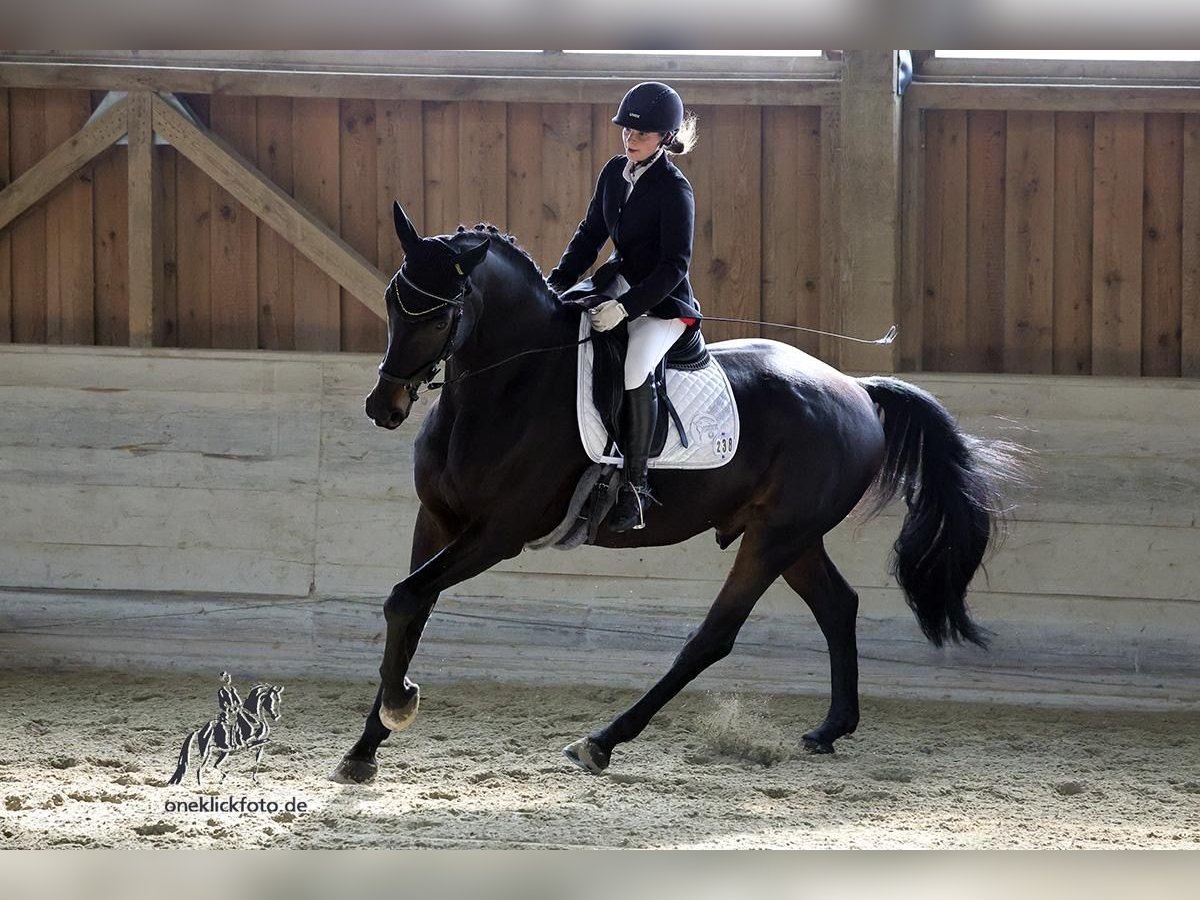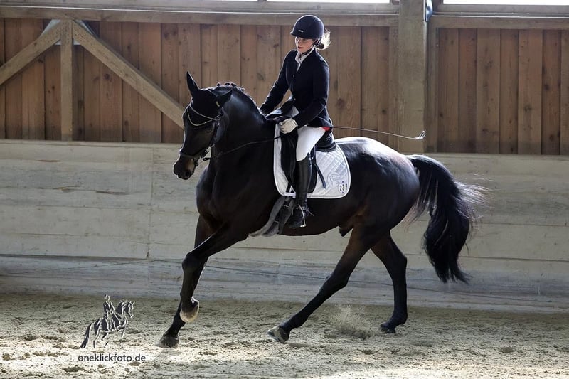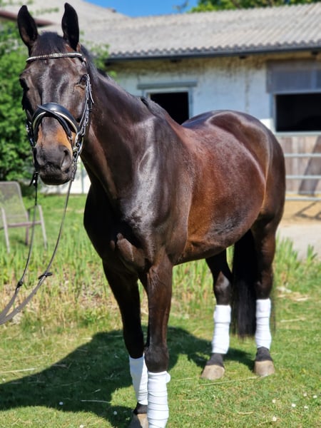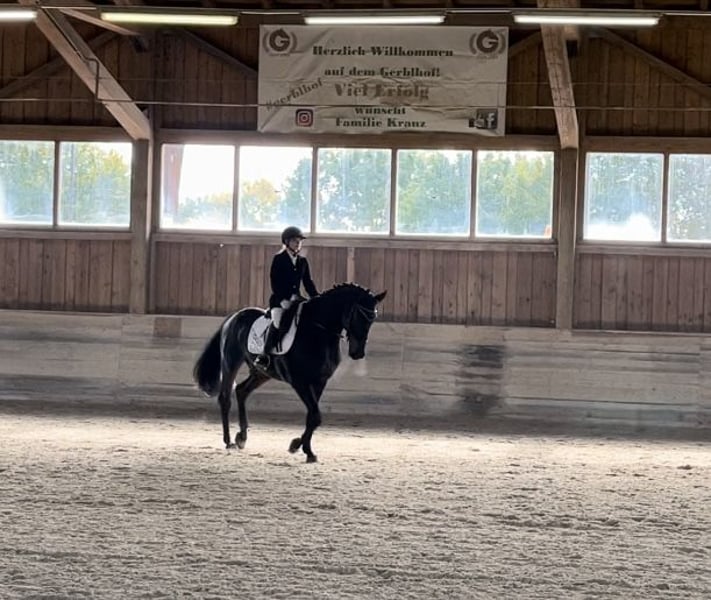Zum Verkauf steht ein wunderhübscher und sehr verschmuster schwarzbrauner Wallach. Er besitzt 3 gute Grundgangarten – dabei ist besonders sein taktsicherer raumgreifender Schritt und sein schwungvoller Galopp hervorzuheben. Felipe besitzt bereits Turniererfahrung. Er wurde auch dabei zum Auswärtstraining regelmäßig verladen und in fremder Umgebung geritten. Selbstverständlich ist er daher auch regelmäßig entwurmt und ordnungsgemäß geimpft. In der Physiotherapie macht er gut mit. Seine Zähne wurden erst wieder vor kurzem gemacht. In seinem Wesen ist er sehr menschenbezogen und verschmust. Er braucht eine feste Bezugsperson, die ihm Klarheit gibt. Ein ruhiger, entspannter und erfahrener Umgang mit ihm gibt ihm die nötige Sicherheit. Er ist daher KEIN Anfängerpferd. Wer ihm mit Vertrauen begegnet, bekommt einen leistungsbereiten, treuen Partner an seiner Seite! Bei Interesse melde dich gerne für weitere Infos, Videos oder einen Proberitt!