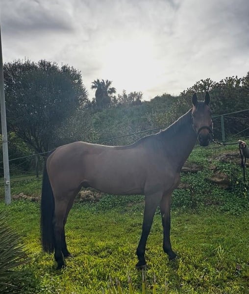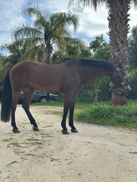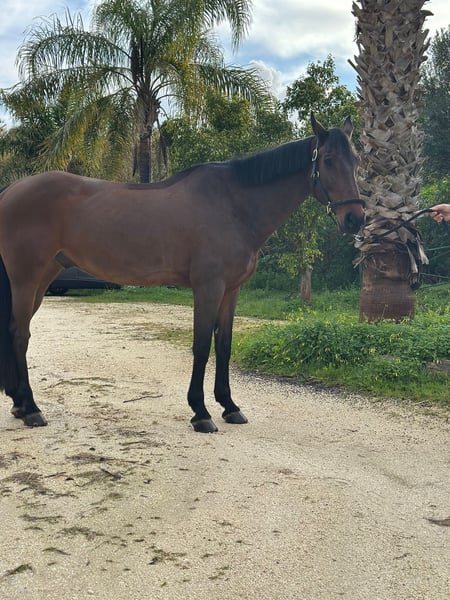 Quality Jump, also known as Quaisa Quim, has two names like any beloved horse. He is a 12-year-old gelding by the exceptional Quality Time, out of Divina (by Diarado x Calido). This impressive pedigree makes him a versatile and talented horse, well-suited for show jumping, ground work, and dressage. He has been successfully competed by both male and female riders at heights ranging from 1.15 m to 1.30 m. He prefers light bits and a confident, forward-riding rider, as he actively engages his back and shows initiative during jumping. Quality Jump has a very friendly and cooperative temperament, while remaining attentive under saddle. He is approximately 16.1 hands tall, travels calmly, and is social with other horses.