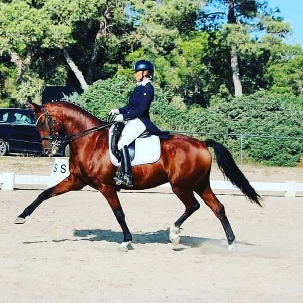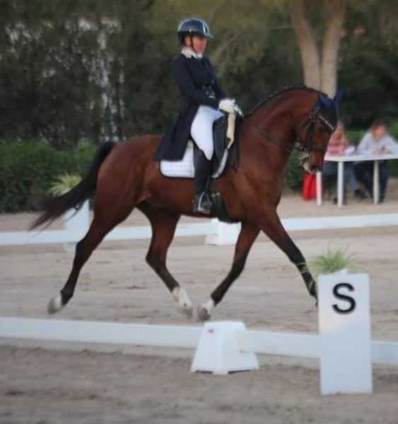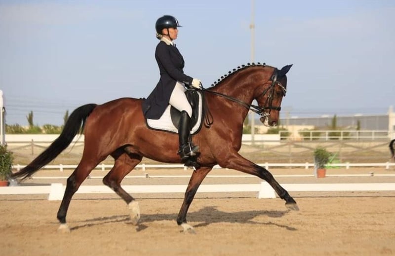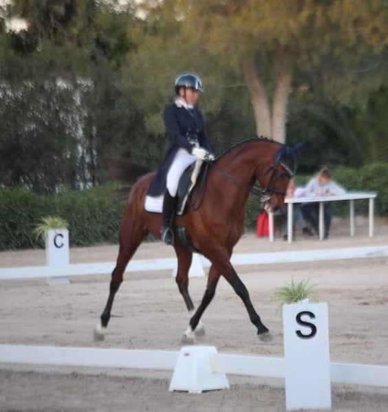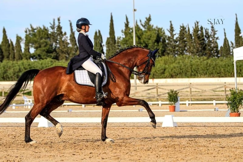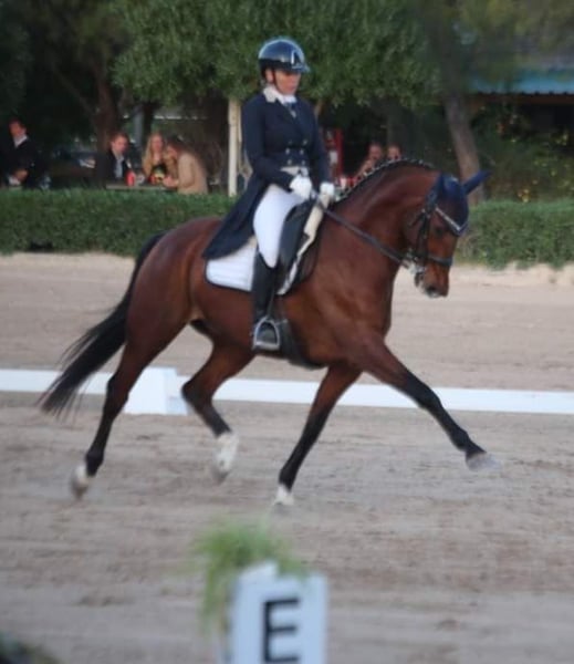 Caballo de un solo propietario, en competición desde los 4 años y jugando ya con algunos movimientos de Gran Premio. Facil en el herraje, transporte, etc.