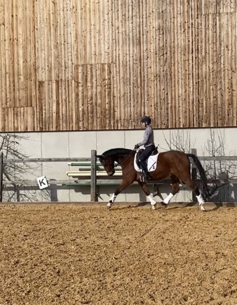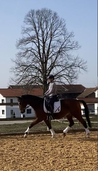 Bis S-Dressur platzierter brauner Wallach, 4-jährig von Züchter gekauft und seither ausschließlich in unserem Besitz, als Freizeitpferd zu verkaufen. Er hat drei sehr gute und angenehme Grundgangarten, Schwung und Gangfreude. Er ist sehr gut ausgebildet und unglaublich lieb. Er ist vielseitig einsetzbar (Dressur, Gelände, Cavaletti, Bodenarbeit) und auch für Jugendliche sehr gut geeignet. Der Wallach ist unkompliziert im Umgang und sehr verlässlich und ehrlich. Uns ist wichtig, dass er nicht mehr im Turniersport, sondern als Freizeitpferd eingesetzt wird. Wir suchen für ihn einen guten Platz mit viel, möglichst täglichem Koppelgang (auch in Gruppe möglich). Platz vor Preis.