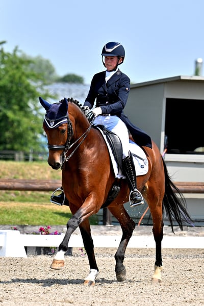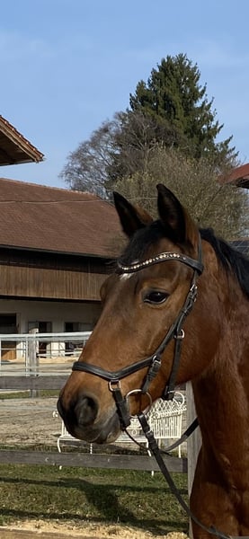 A 4-year-old bay gelding, placed in S-Dressage, purchased from the breeder and exclusively in our possession since then, is being offered as a leisure horse. He has three very good and comfortable basic gaits, rhythm, and joy of movement. He is very well-trained, easy to ride, and incredibly sweet. Versatile in use (dressage, trail riding, cavaletti, groundwork) and also very suitable for young riders. The gelding is straightforward to handle, reliable, and honest. It is important to us that he is no longer used in competitive sport but as a leisure horse. We are looking for a good home for him with plenty of turnout, ideally daily (group turnout possible).