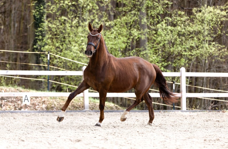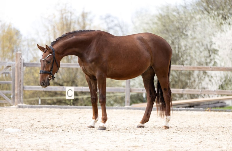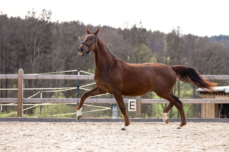 Verkaufe einen vielversprechenden deutschen Sportpferd-Wallach, geboren im Jahr 2023. Der elegante Dunkelfuchs besticht durch sein harmonisches Exterieur und sein vielversprechendes Potenzial im Dressursport.
