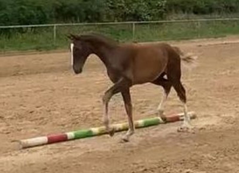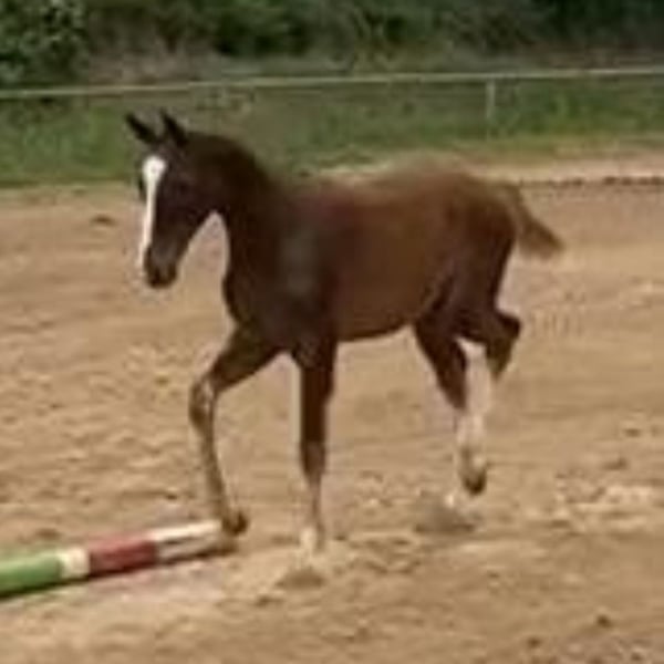 For sale is a well-developed yearling stallion by Meganus PS (Messenger x Carthago) out of a successful dam by Concorde (Voltaire). He can be laid on request. In a chic chestnut-colored jacket, he presents himself relaxed and light-footed in movement. He is sociable, masters the foal ABC and has a lot of charm. A performance-oriented, sporty type who, due to his pedigree, offers the best basic requirements for high-level show jumping. Sire "Meganus PS" impresses with his boundless jumping talent and a sensational and rare bloodline. With eleven victories alone, including defending his title at the prestigious Dobrockchampionat (9.2) and winning the qualifier at the Bundeschampionat (8.8), Meganus PS built on previous show jumping successes under his trainer Patrick Stühlmeyer in 2022. Further information can be viewed at: https://schockemoehle.com/deckstation/hengste/meganus-ps Dam "Warma" was herself successful in show jumping competitions up to 1.35 m and was awarded a KWPN star mare and the DSP "Sport" premium for her athletic performance. The colt comes from a successful and powerful damline - to be viewed at: https://www.kwpn.org/kwpn_database?horse=p-337700 -> Menu -> Performance damline If you are seriously interested, please send us current photos and video recordings or make an appointment for a viewing.