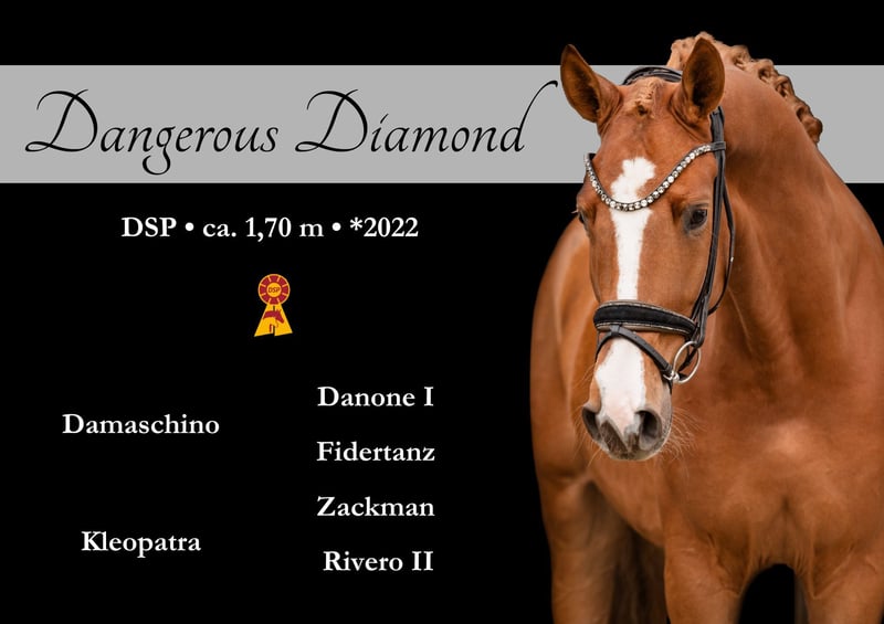 Dear Interested Parties, To schedule a test ride, please send me a WhatsApp message. For further questions, I am available during the day via WhatsApp, and you can reach me best by phone between 4 PM and 7 PM. I look forward to hearing from you. www.angelina-devittorio.de ⭐️Diamond⭐️ Age: 3.5 years (2022) Height: approximately 16.1 hh Pedigree: Damaschino x Zackman Training level: Riding horse level Health: Good X-rays available Presented in a stallion-like conformation and with impressive beauty, this nearly 4-year-old gelding by Damaschino out of a Zackman mare exudes elegance. Diamond impresses as a highly talented young horse, carefully and horse-appropriate solidly backed and already bringing joy day after day. With his very clear-headed nature, he is a promising young horse that will be a pleasure for his trainer both in training and in everyday handling. He consistently proves to be uncomplicated, brave, and of a lovable character; he is also a true treasure in handling. His fundamental quality in all three gaits is very good, and he has everything needed to shine in the big arena in the future. With stunning appearance, a clear mind, and an absolutely positive demeanor, he is developing into a young horse of exceptional quality. Thanks to his very easy-going character, he is absolutely suitable for amateurs and ideal for any rider with young horse experience. ⚜️ Phone: 0171-3438949 ⚜️ Email: a.devittorio@web.de ⚜️ https://www.ehorses.de/angelinadevittorio Facebook and Instagram: Angelina De Vittorio