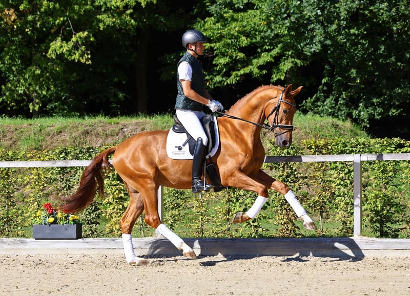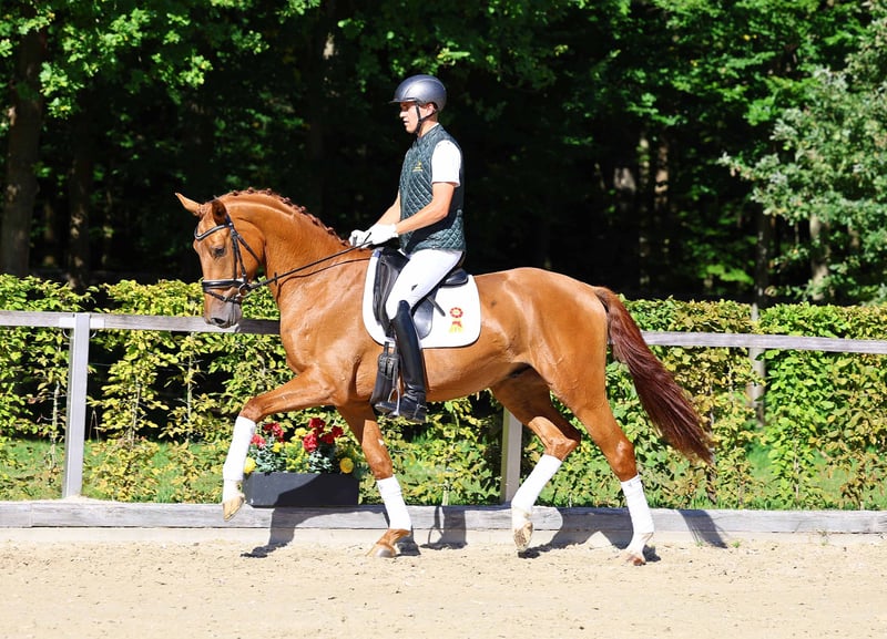 Here is the link to the collection and online registration: https://auktion.pzvbw.de/auctions VAT 19% A big-framed master of movement at the beginning of his career, he follows in the footsteps of his successful ancestors. His granddam, Niobe, for example, was a two-time DSP Vice Champion. He placed at his first competition in the Saxon-Thuringian Riding Horse Championships.
