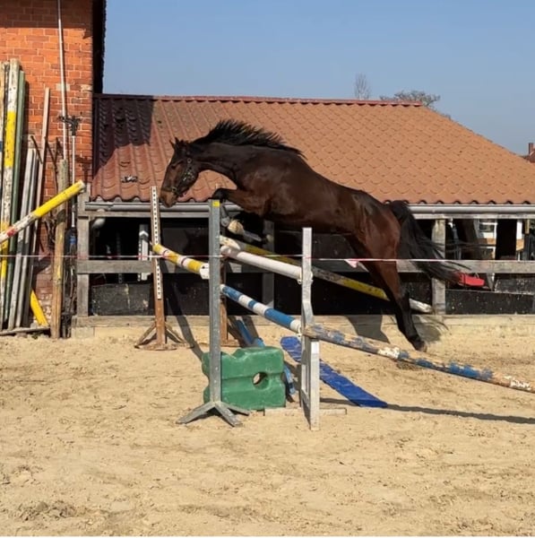 En raison d'une réduction de stock et du manque de temps, à céder. C'est une jument d'entraînement en longe, sœur à 100 %. Elle mesure 1,55 m. Des radiographies sont disponibles.