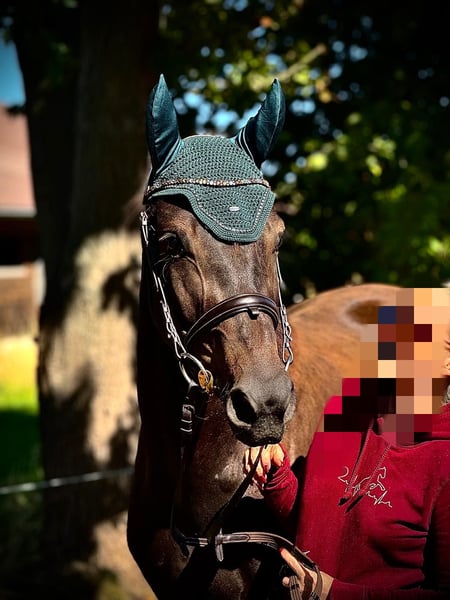 Met pijn in het hart moet ik afscheid nemen van mijn geliefde ruin Sir Cetti. Hij is geboren op 28-06-2022. Hij overtuigt niet alleen door zijn karakter, maar ook door zijn zeer interessante afstamming: zijn vader is een bekende dressuurhengst uit Moritzburg, en zijn moeder heeft succesvol tot S-klasse gesprongen – de ideale basis voor een veelzijdig talent voor de toekomst. Hij kent de volledige grondwerkopleiding en longeertraining. Hij gaat zonder problemen naar de hoefsmid en dierenarts. Hij is altijd braaf tijdens het in- en uitladen, vooral als je hem een positief gevoel geeft. Door lange wandelingen in een groep, maar ook alleen, is hij gewend aan het bit en de zadel. Hij gaat probleemloos in de longeerbak. Vanwege zijn voortdurende groeispurten is hij nog niet zadelmak, maar er is al één keer kort op hem gereden. Cetti is een zeer leergierige ruin met veel energie en de wens om te gefallen. Hij heeft een geweldige werkhouding, soms wil hij net iets te veel, en daarom verdient hij een ruiter met gevoel en duidelijke structuur die hem verder kan begeleiden. Een veelbelovend jong paard met veel potentieel voor sport of recreatie, interessant voor zowel dressuur als springen. Momenteel staat hij in Callenberg. Bij interesse, voor meer vragen of extra foto's en video's, neem gerust contact op via 015253010200. Hij wordt echt alleen verkocht vanwege tijdgebrek, omdat hij simpelweg meer aandacht nodig heeft, die ik hem momenteel niet kan geven.