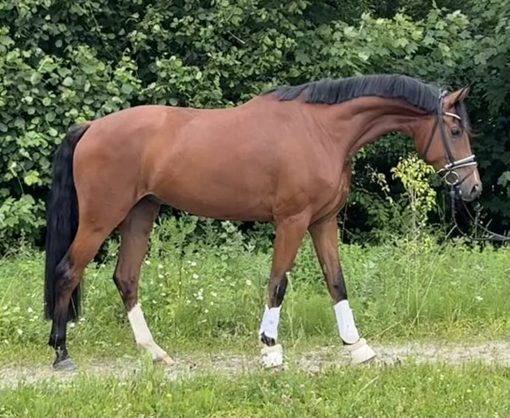 Vincent Vega combines an excellent dressage pedigree with outstanding movement quality and an exceptional temperament. He is sired by the currently highly sought-after stallion Von und Zu, whose offspring regularly set auction price records and celebrate wins. His dam line is equally impressive: descendants from this lineage have achieved success up to S*** level, demonstrating the strong sporting potential of this breeding. This quality is clearly evident under saddle: Vinci impresses with above-average movement, a clearly defined rhythm, great elasticity, and an active, powerful hind leg that consistently places itself securely beneath the center of gravity. His modern type and attractive exterior complete the overall sporty appearance. Beyond his potential in the dressage arena, Vinci captivates with a lovable and uncomplicated character. He is a true gem in daily handling—always friendly, personable, and attentive. He would do anything for a treat, enjoys extensive grooming sessions, and remains calm and well-behaved during farrier visits, loading, and handling. Under saddle, Vinci proves to be a motivated, eager-to-learn, and pleasant riding partner who always aims to please his rider. Good X-ray results, including the back, are available.