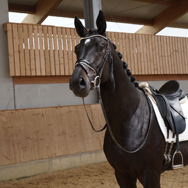💎 Wallach 💎 4 Jahre 💎 1,78 m 💎 Nachwuchspferd für große Aufgaben ⸻ Zum Verkauf steht ein ausdrucksstarker, bildschöner 4-jähriger Wallach, der nicht nur durch seine Größe von 1,78 m, sondern vor allem durch seinen fantastischen Charakter überzeugt. Er ist ein Pferd, das vom ersten Moment an alle Herzen im Sturm erobert – freundlich, menschenbezogen und mit einem unglaublich angenehmen Wesen. Er kommt direkt vom Züchter und wurde aufgrund seiner Größe schonend angeritten und weiter ausgebildet. Er bringt eine solide Grundausbildung, viel Balance und eine bemerkenswert natürliche Rittigkeit mit. • extrem brav, • immer freundlich, • unkompliziert, • menschenbezogen und anhänglich, • sehr sozial im Umgang mit anderen Pferden, • und macht immer alles richtig, weil er gefallen möchte. Seine natürliche Rittigkeit, sein gutes Hinterbein und seine Bereitschaft, sich anzubieten, machen ihn zu einem Pferd, das jeden Tag Freude macht. Er zeigt schon jetzt viel Talent für spätere versammelte Lektionen und bringt das Potenzial für eine sportliche Karriere auf gehobenem Niveau mit. ⸻ Aktuell befindet er sich auf einem stabilen Dressurpferde-A-Niveau und ist klar auf dem Weg Richtung Dressurpferde-L. Er kennt: • Reiten in der Halle, • Arbeiten auf dem Außenplatz, • Ausreiten – brav, unerschrocken, entspannt. Durch seine Größe wurde er bisher bewusst ruhig aufgebaut, was sich positiv auf seine Losgelassenheit, seine mentale Stärke und seine körperliche Entwicklung auswirkt. ⸻ Ein aktueller, sehr guter TÜV liegt vor. Keine Auffälligkeiten – ein Pferd, das gesund, klar im Kopf und körperlich gut vorbereitet in seine sportliche Zukunft starten kann. Er eignet er sich hervorragend für: • ambitionierte Amateure, die ein verlässliches, leicht zu reitendes und zutrauliches Pferd suchen • Profis, die ein großes Nachwuchspferd mit viel Perspektive fördern möchten Er hat alles, was man für eine erfolgreiche Zukunft im Dressursport braucht: Größe, Qualität, Reiteigenschaften, Einstellung und Ausstrahlung. ⸻ Für diesen außergewöhnlich lieben Wallach wünschen wir uns ein förderndes, langfristiges Zuhause, in dem er sportlich weitergearbeitet und mit Geduld und Freude begleitet wird. Sein Charakter und seine Qualität machen ihn zu einem Pferd, das eine echte Herzenspartnerschaft verspricht. ⸻ Ein traumhaft schöner, großrahmiger und überaus lieber 4-jähriger Wallach mit besten dressurbetonten Anlagen, top Rittigkeit und hervorragender Zukunftsperspektive. Selten findet man ein Pferd, das so viel Qualität, Ausstrahlung und Herz in sich vereint.