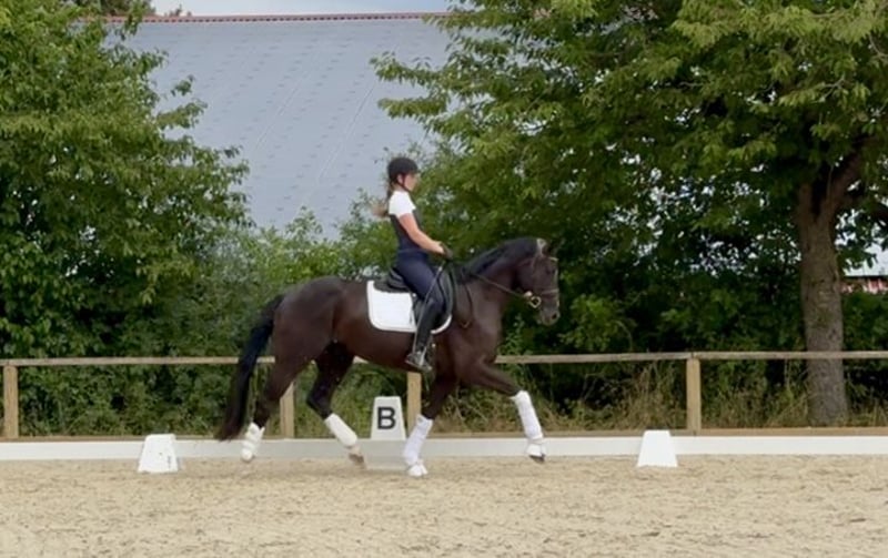 This beautiful dark bay gelding is seeking a home where he can continue to be nurtured and loved. An easy horse to bring out of the box: honest, well-behaved, very eager to learn, with enough sensitivity and healthy drive to later master more advanced movements. At just four years old, he is placed at 7.8 in a Dressage Horse Level A. Over the winter, he will be calmly further trained towards L-level – he already shows initial progress. What makes him special: - A true heart horse with no vices - Farrier- and loading-friendly - Adjustable energy, no bucking or rearing - Very refined riding feel and comfortable seat - Attentive, cooperative, always eager to do everything right Videos and test rides are available upon request. To prevent riding tourism on this young horse, we charge a €50 fee, which will be credited towards the purchase price. A standard X-ray examination with no findings of concern (spring 2025) is available. Please contact via WhatsApp: +49 151 10699165