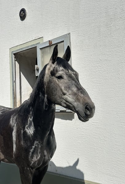 Zum Verkauf steht ein wunderschöner Wallach, geboren im Jahr 2020. Mit einem Stockmaß von 163 cm ist er der ideale Partner für ambitionierte Reiter. Er wird seit Winter 2024 geritten und besitzt eine solide Grundausbildung. Der Wallach ist brav im Umgang, gut händelbar und hat einen freundlichen, mutigen Charakter. Er eignet sich sowohl für erfahrene Reiter als auch für solche, die auf der Suche nach einem verlässlichen Partner für den Freizeitsport sind. Sowohl beim Springen als auch im Gelände zeigt er sich unerschrocken und vermittelt auch Anfängern ein sicheres Gefühl. Bei Interesse oder weiteren Fragen freuen wir uns über Ihre Nachricht!