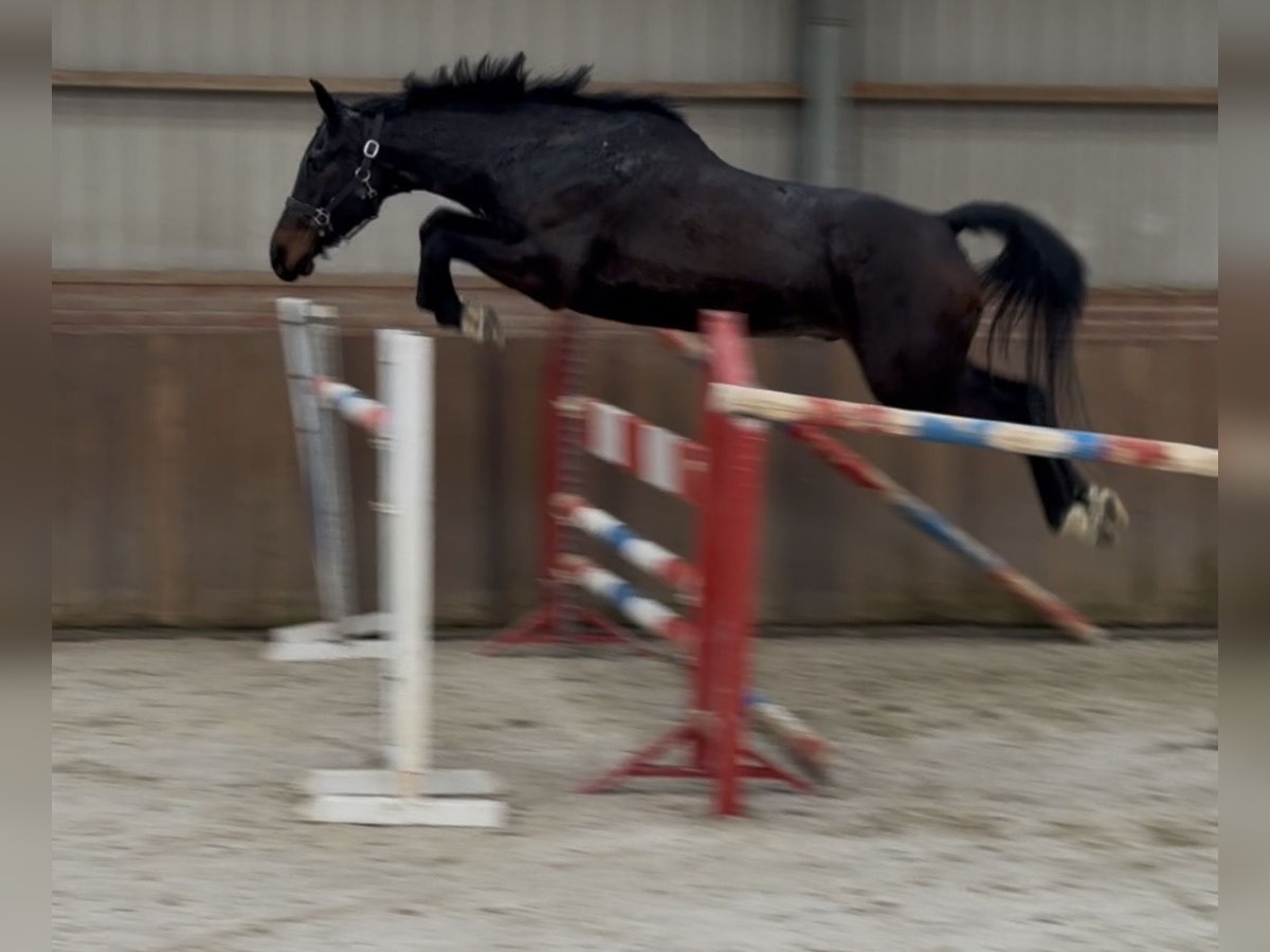 Beautiful 4.5-year-old black-brown gelding by Diarado. This gelding has a refined, athletic build with a sharp appearance. He moves light-footed and demonstrates good flexion in the hind leg. Over fences, he shows a lot of quality, accurately judging each jump. He has quick reflexes and displays good technique, consistently clearing the obstacle with ease. Given his sharp type and a pedigree tracing back to a full-blood line, he is certainly an interesting prospect and well-suited for eventing. So far, this gelding is still untrained. Who is ready to work with this handsome fellow? For inquiries, please contact us by phone or via WhatsApp at +31(0)643197337 or +31(0)648271956.