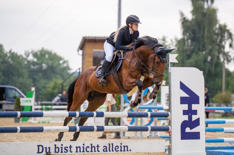 For sale is a 5-year-old gelding by Cheetano (Coriano x Capitol II) with a height of 166 cm. Charlie started his first show jumping test at class A in April of this year and was able to place immediately. He has been successful in show jumping A* and has been presented in show jumping A**. In the course, he shows himself to be eager to perform, brave, and with good overview – when he receives the necessary confidence from the rider, he jumps everything. He is light to ride. Due to his pedigree, he may also be interesting for dressage. In daily handling, Charlie is sweet and sensitive and, due to his age, is not a pure beginner's horse. He needs an empathetic, patient person who provides him with consistent guidance and takes their time. Then he shows himself to be very cooperative and willing to perform. He is naturally shoe-friendly and loading-friendly, knows trail riding both alone and in a group. No known health deficiencies. A vet check from 12/24 is available, including X-rays. Videos and competition name available upon request. He is offered exclusively to loving, supportive hands.