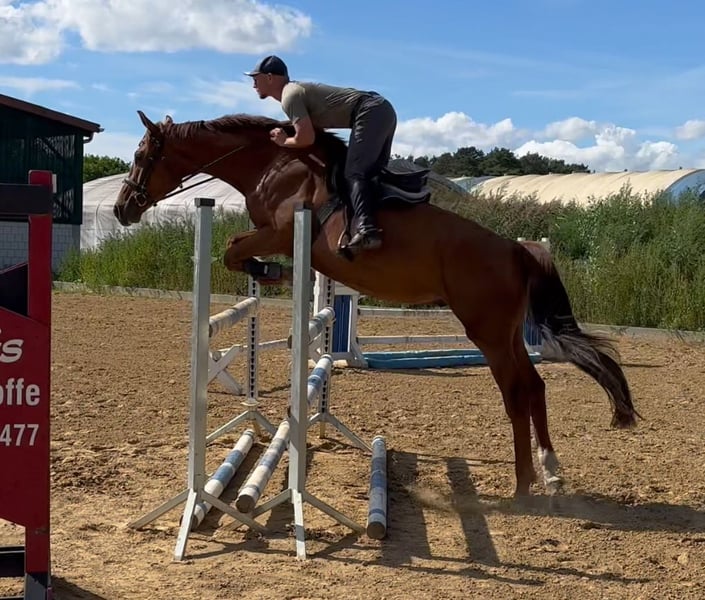 Verkaufe deutsches Sportpferd – vielseitiger Wallach, geb. 2021, Fuchs, 168 cm Dieser charmante Fuchs-Wallach ist ein vielversprechendes deutsches Sportpferd mit großem Potenzial in der Vielseitigkeit. Geboren im Jahr 2021, überzeugt er durch seine ausgeglichene Natur, seine solide Grundausbildung und sein freundliches Wesen. Mit einem Stockmaß von 168 cm bietet er die ideale Größe für ambitionierte Reiter, die auf der Suche nach einem zuverlässigen Partner für den Turniersport sind. Der junge Wallach ist bereits gut geritten und zeigt sich in allen Disziplinen vielseitig talentiert. Seine Bewegungsqualität, sein springbetontes Fundament und seine Bereitschaft, Neues zu lernen, machen ihn zu einem vielversprechenden Nachwuchstalent. Dank seiner guten Grundausbildung ist er sowohl für den Sport als auch für den ambitionierten Freizeitreiter geeignet. Bei Interesse und für weitere Informationen stehe ich gerne zur Verfügung. Checkmate ist bereit, mit einem engagierten Reiter gemeinsam neue Erfolge zu erzielen. Gern senden wir Ihnen auch aktuelle Videos zu. Machen Sie einfach einen Termin zum Probe reiten aus und überzeugen sich von diesem tollen Wallach