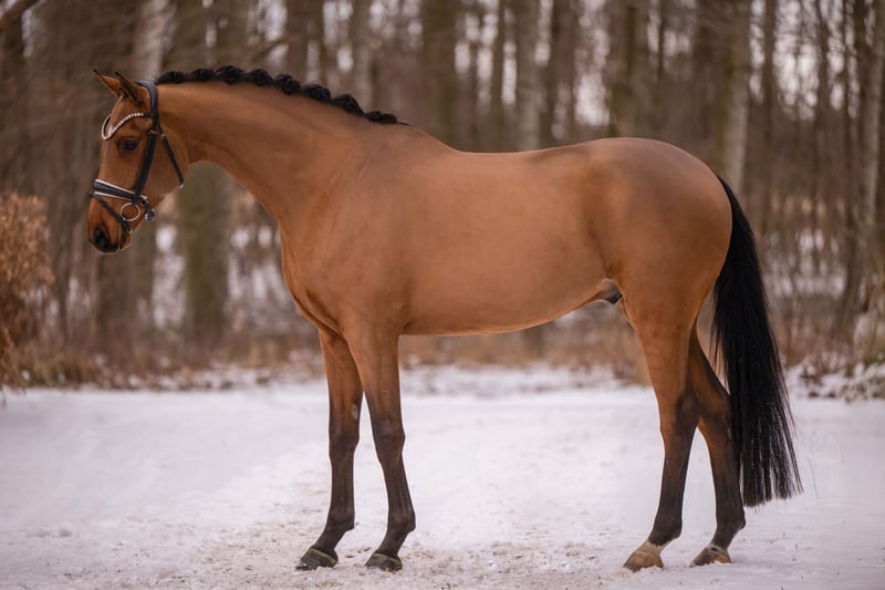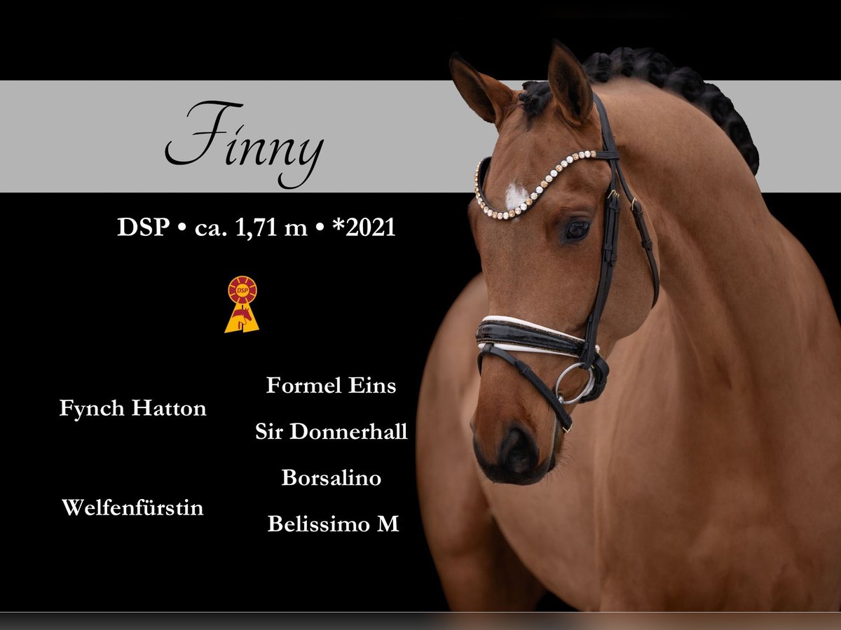 Liebe Interessenten, Für Terminvereinbarungen Probereiten senden Sie mir bitte eine WhatsApp. Für weitere Fragen bin ich tagsüber per WhatsApp erreichbar, telefonisch erreichen Sie mich am Besten zwischen 16 und 19 Uhr. Ich freue mich auf eine Kontaktaufnahme www.angelina-devittorio.de ⭐️Finny⭐️ Alter: 5 Jahre (2021) Größe: ca 1,72 m Abstammung: Fynch Hatton x Borsalino Ausbildungsstand: gut angeritten AKU: Gute Röntgenbilder vorhanden Dieser traumhafte Youngster begeistert durch seine super schicke Optik und seine überragende Qualität in allen drei Grundgangarten. Ein traumhaftes Nachwuchspferd, das durch seine imposanten Bewegungen alle Blicke auf sich zieht . Mit enormem Ausdruck und Bergauf-Tendenz unter dem Sattel präsentiert er sich bereits jetzt als echtes Nachwuchstalent mit Potenzial für das große Viereck. Da er ein großrahmiges Pferd ist wurde ihm viel Zeit gegeben und ist jetzt solide und pferdegerecht gut angeritten, zeigt sich stets motiviert und möchte seinem Reiter gefallen. Sein lieber Charakter macht ihn zu einem besonders angenehmen Partner, der trotz seiner Jugend auch für ambitionierte Amateure interessant ist – selbstverständlich mit entsprechender Jungpferdeerfahrung. Ein vielversprechendes Nachwuchspferd besonderer Güte, das mit seiner Qualität und seinem Auftreten begeistert. ⚜️Tel: 0171-3438949 ⚜️a.devittorio@web.de ⚜️https://www.ehorses.de/angelinadevittorio Facebook und Instagram Angelina De Vittorio