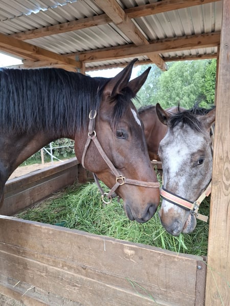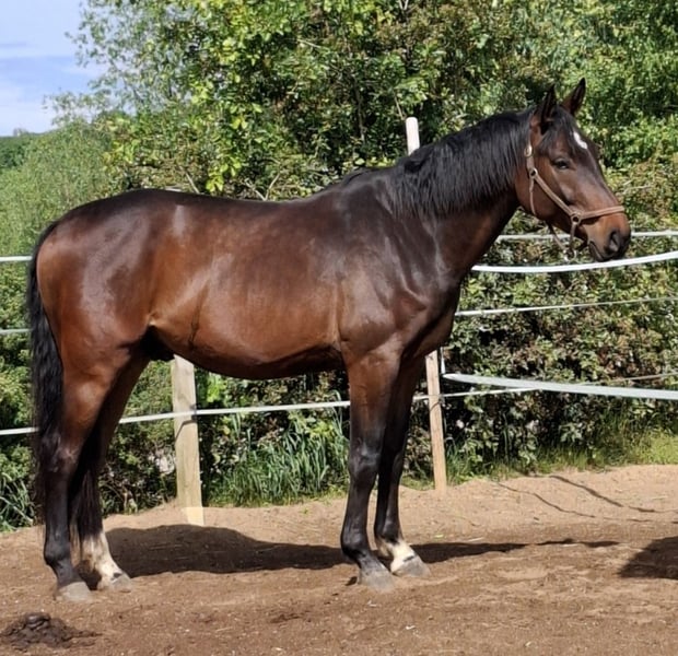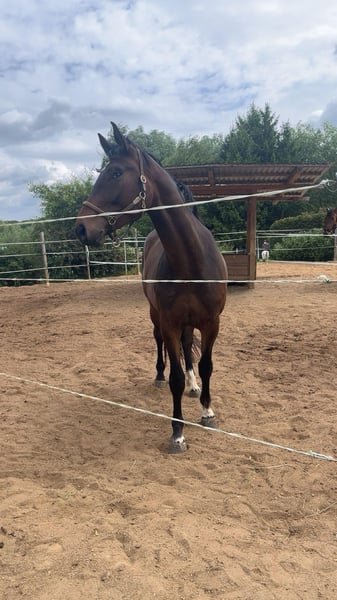 Zum Verkauf steht ein im Mai fünfjährig werdender, großrahmiger Deutsches Sportpferd-Wallach von Rotspon mit klarer Dressurveranlagung. Aufgrund seines Formats wurde er bewusst erst spät angeritten und altersgerecht sowie moderat gearbeitet. Er befindet sich noch in der körperlichen Entwicklung und wird voraussichtlich noch wachsen (ca. 1,80 m Endmaß). Unter dem Reiter ist er zuverlässig, aufmerksam und angenehm zu reiten. Solide Grundgangarten, erste Seitengänge in Ausbildung, sehr schwungvolle Gänge und schöne Bergaufgaloppade. Im Gelände (zu zweit/Gruppe) brav. Besonderheit: seit Koppelunfall vor 3 Jahren linksseitig erblindet, ohne Einschränkung im Alltag oder unter dem Reiter. Aufgrund seines Alters und Größe nicht für Anfänger geeignet – benötigt eine ruhige, sichere und konsequente Hand. Bodenarbeit / Longieren: Altersbedingt wach und hinterfragend. Erkennt er den Menschen klar als Führung, arbeitet er sehr korrekt, zeigt seine hochwertigen Gänge und reagiert verlässlich auf alle Grundkommandos. Aktuell fällt ihm das Longieren teilweise schwer, was meiner Einschätzung nach mit seiner Dominanz, Größe und noch fehlenden Balance zusammenhängt – diese Arbeit liegt ihm daher nicht immer. Auf der linken Hand (blinde Seite) kann er bei unklarer Führung nach innen drängen. Mit klarer Kommunikation oder ausgebunden longiert ist dieses Thema nicht vorhanden. Umgang & Haltung: Unkompliziert im täglichen Handling (Satteln, Trensen, Schmied, Tierarzt problemlos), schmiedefrom, aktuell barhuf. Er steht in einer reinen Wallachherde. Haltung bekannt: – Frühjahr bis Spätherbst Offenstall (24/7) – Winter: Paddock tagsüber (Weidegang wäre von Vorteil), Box nachts Aufgrund einer linksseitigen massiven körperlichen Einschränkung im Schulterbereich meinerseits, kann ich ihm die kontinuierliche Förderung nicht mehr bieten, die ein junges Pferd mit dieser Perspektive benötigt. Preis deutlich unter Wert, berücksichtigt meine Situation sowie die einseitige Blindheit – nicht seine Qualität. 🐎 Probereiten jederzeit möglich. Halle und Longierzirkel nicht vorhanden. Nur Reitplatz, daher Wetterabhängig. 📌 Bei ernsthaftem Interesse wünsche ich mir eine kurze Vorstellung: – Stall- und Haltungsform Unverschämte Anfragen werden ignoriert.