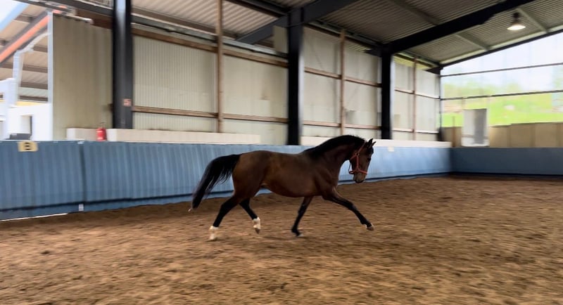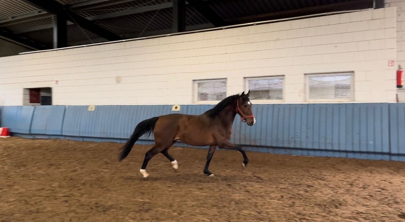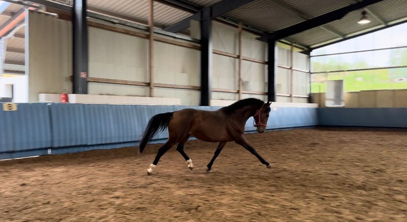 Direct van de fokker staat een 5-jarige ruin van Monte Bellino uit de Lola van Leonberg - Wolkenstürmer. Als veulen won deze slimme jongeman al het veulenkampioenschap in Rheinland-Pfalz-Saar voor springgerichte veulens met cijfers van 9 - 9,5 - 10 voor beweging. Volgens de afstamming is hij dubbelveranlagt. Allicht bereden toont hij zich zeer rijdzaam en in bovenmatige mate brave. Videosequenties onder het zadel kunnen na contact via WhatsApp worden verzonden. Bij interesse: 01705371172