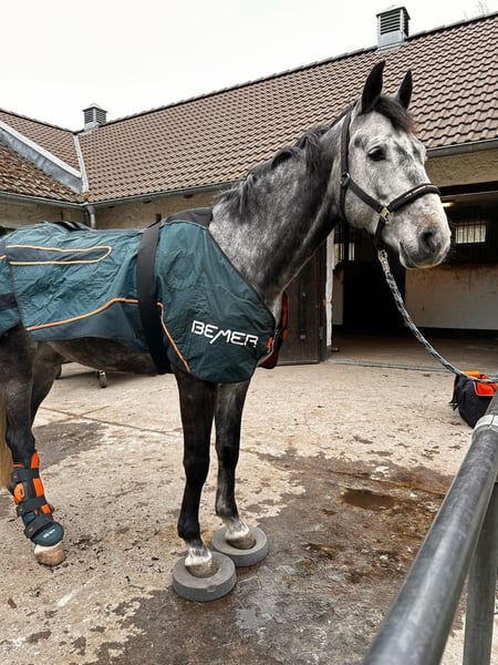 Extrêmement montable et proche de l'homme. Entraîné intensivement pendant environ 14 mois. Très sûr et motivé en extérieur et intrépide. C'est donc le cheval parfait pour tout ce qui se passe "dehors", comme les randonnées, la chasse, etc. De plus, il est formé pour les parcours de saut d'obstacles classiques et pour acquérir les bases d'une bonne montabilité et sensibilité. Un excellent partenaire pour l'avenir. Actuellement, il est en pleine croissance. N'hésitez pas à venir le voir et à l'essayer. L'instructrice a investi beaucoup de temps pour en faire un partenaire exceptionnel. Haribo se monte fantastiquement bien et a en plus une très belle apparence :-). Il est également facilement gérable par des cavaliers moins expérimentés. Haribo a aussi de l'expérience avec des sorties à la plage (Mer Baltique) et est vraiment un bon "copain". Pour le bon cavalier, il sera un "cheval d'âme". Ensemble, vous pourrez affronter toutes les épreuves. Il pourrait également rester sur place et continuer son éducation (sur accord). Né et élevé au Haras de Neustadt-Dosse. Présenté pour la sélection des chevaux de saut. À vendre pour le compte de quelqu'un.