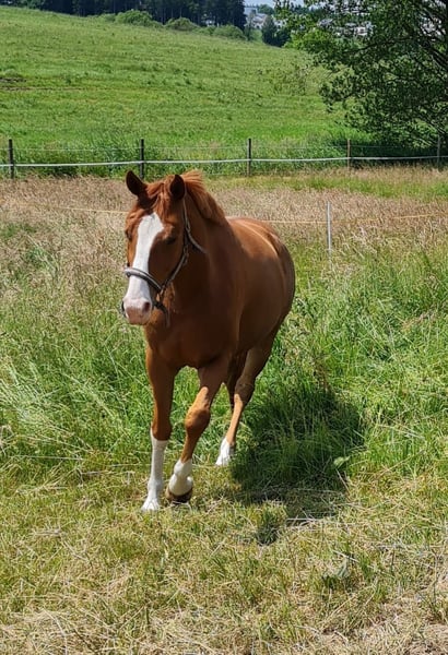 Verkaufe deutsches Sportpferd – idealer Partner für ambitionierten Amateur oder Freizeitreiter! Zum Verkauf steht ein wunderschöner Fuchs-Wallach, geboren im Jahr 2019. Wurde als Fohlen gekauft. Prämiert als Goldfohlen. In familiärem Besitz und Haltung, mit täglichem Koppelgang. Das Pferd verfügt über ein angenehmes Stockmaß von 163 cm und hat drei tolle GGA. Mit seiner eleganten Erscheinung und seinem ausgeglichenen Charakter ist er ein zuverlässiger Partner für den ambitionierten Reiter. Er überzeugt durch seine gute Grundausbildung im Dressurbereich, hat Turniererfahrung Drpf. A, ist unerschrocken, des Weiteren kennt er Stangenarbeit und kleinere Sprünge. Sein freundliches Wesen macht ihn für erfahrene Reiter zu einem angenehmen Begleiter. Nur in beste Hände wegen Zeitmangel abzugeben. Video auf Anfrage. Bei Interesse oder weiteren Fragen stehe ich gerne zur Verfügung.