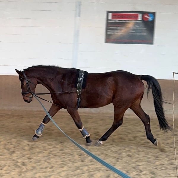 Zum Verkauf steht ein wunderschöner brauner Wallach mit derzeit 166 cm Stockmaß, geboren am 10.05.2020. Das Pferd ist angeritten, eignet sich voraussichtlich aber leider nicht für den Turniersport, da er unter Stress Magenprobleme entwickelt. Unter dem Reiter neigt er zum Steigen und wird deshalb zur Zeit sicherheitshalber mit Stoßzügel geritten. Außerdem zeigt er eine intermittierende Taktunreinheit, die nicht weiter abgeklärt wurde. Er wurde regelmäßig geimpft und entwurmt und ist zahn- sowie huftechnisch bestens versorgt. Im Umgang ist der Wallach brav und sensibel. In der Herde integriert er sich gut und ist sozial. Deshalb hoffen wir, dass er mit ein wenig Zeit und ohne Druck ein gutes Freizeitpferd wird. Als Schulpferd oder an Händler wird er nicht abgegeben. Bei Interesse, weiteren Fragen oder zur Vereinbarung eines Kennenlerntermins melden Sie sich jederzeit gern. Der Sattel kann gegen Aufpreis mit übernommen werden.