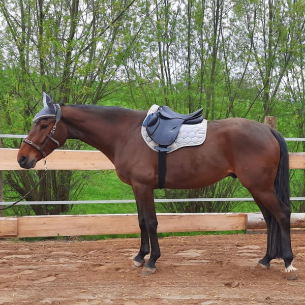 À vendre : un magnifique hongre bai, mesurant actuellement 1,66 m au garrot, né le 10 mai 2020. Le cheval est monté en selle, mais il ne semble malheureusement pas adapté à la compétition, car il développe des problèmes gastriques lorsqu'il est stressé. Sous la selle, il a tendance à faire des éboulis et est donc actuellement monté avec des rênes de martingale pour sa sécurité. De plus, il présente une irrégularité de la cadence intermittente, qui n’a pas encore été approfondie. Il a été régulièrement vacciné, vermifugé, et bénéficie d’un excellent soin dentaire et de ferrure. En main, le hongre est calme et sensible. Il s’intègre bien dans le groupe et est sociable. Nous espérons donc qu’avec un peu de temps et sans pression, il deviendra un bon cheval de loisir. Il ne sera pas vendu comme cheval d’école ou à un revendeur. Pour toute question, intérêt ou pour convenir d’un rendez-vous de rencontre, n’hésitez pas à nous contacter à tout moment. La selle peut être reprise moyennant un supplément.
