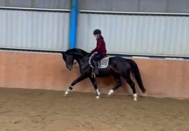 Dieser ausdrucksstarke Hengst von Escamillo x Quaterback verfügt über hervorragende Bewegungen. Er war noch nie krank oder verletzt. Er hat einen tollen Charakter und ist sehr gelehrig. Der Vollbruder der Mutter ist gekört, war bereits 6-jährig M-siegreich und geht erfolgreich Grand Prix. Sein Bruder von Escolar ist S-Dressur und M-Springen erfolgreich. Selbstverständlich kann er auf Wunsch gelegt werden. Escamillo war Prämienhengst seiner Körung 2017 in Verden, legte 2018 seinen 14-Tage-Test mit der Dressurnote 9,08 ab und absolvierte 2020 seinen Sporttest unter Helen Langehanenberg mit der Siegerbewertung von 9,36. Unter der Olympia-Teamzweiten qualifizierte er sich auch fünfjährig mit einer 9,5 für die Dressurpferde-Bundeschampionate. Züchterisch gehört Escamillo schon jetzt zu den erfolgreichsten Beschälern. Quaterback, selbst Bundeschampion (Note 10,0 auf den außergewöhnlichen Trab). Der zuletzt auf Platz vier der weltbesten Dressurvererber rangierende Elitehengst stammte aus der Neustädter P-Familie und sammelte nach seinem überragenden Sieg auf dem Bundeschampionat 2006 wiederholt Titel in Dressuren bis zur schweren Klasse. Weltweite Maßstäbe setzte Quaterback allerdings nicht im aktiven Sport, sondern in der Zucht. So lieferte der Quaterman-Sohn zahlreiche gekörte Hengste sowie im Grand Prix-Sport erfolgreiche Nachkommen.