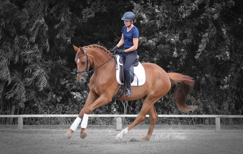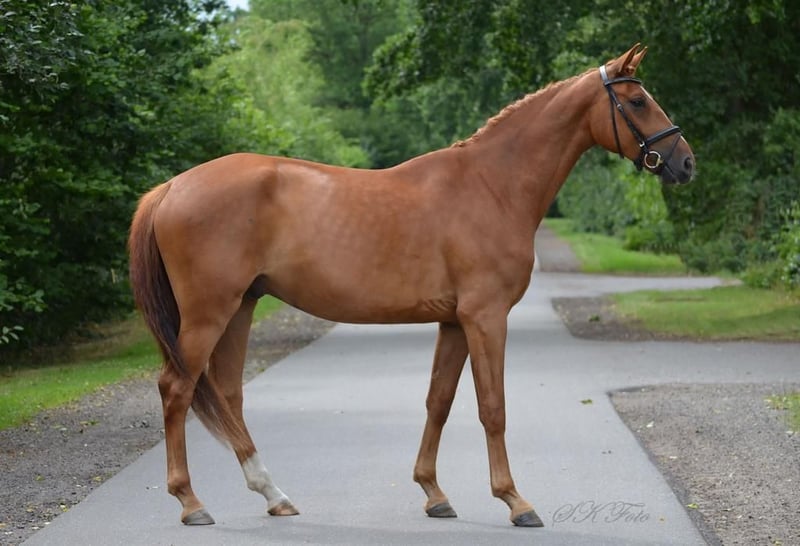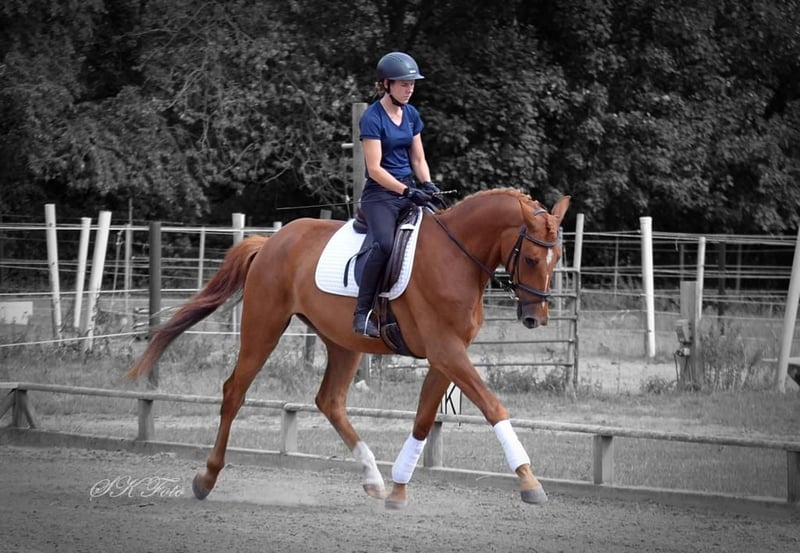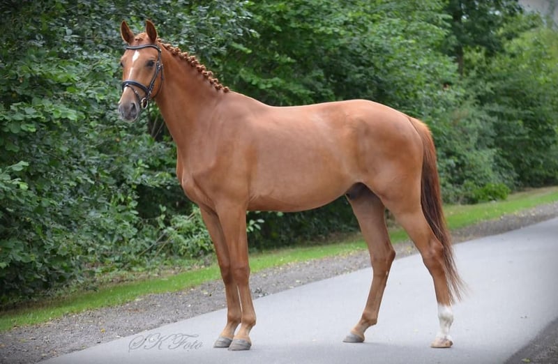 Zum Verkauf steht ein wunderschöner, talentierter Wallach, geboren im Jahr 2020. Dieser Fuchs begeistert durch sein elegantes Erscheinungsbild und sein angenehmes Temperament. Mit einem Stockmaß von 172 cm bietet er die perfekte Größe für ambitionierte Reiterinnen und Reiter, die sich im Dressursport weiterentwickeln möchten. Der sportliche Nachwuchs überzeugt durch seine Bewegungsqualität, seine Lernbereitschaft und sein Potenzial für den Turniersport. Er ist fein an den Dressurarbeit gewöhnt und zeigt bereits viel Versammlung und Grundgangarten. Video auf Anfrage. Bei Interesse oder für weitere Informationen stehe ich gerne zur Verfügung. Vereinbaren Sie einen Termin für eine Besichtigung und eine Proberunde!