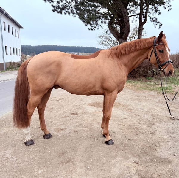 Con Moto is a well-muscled 6-year-old chestnut gelding sired by Colman. Standing at 17.1 hh and correctly built, this gelding impresses not only with his appearance but also with his motivation and willingness to perform. Con Moto has been gently backed and trained. This horse is an excellent all-rounder, suitable for jumping, dressage, or simply relaxed leisure riding. He is a loyal and dependable companion. Con Moto is naturally healthy and has front shoes. Further information and videos are available via WhatsApp or by phone at: +43 660 3632373 Location: Pelmberg 15 / Upper Austria Viewing and test riding are available by appointment! Transport of the horse can be arranged upon request.