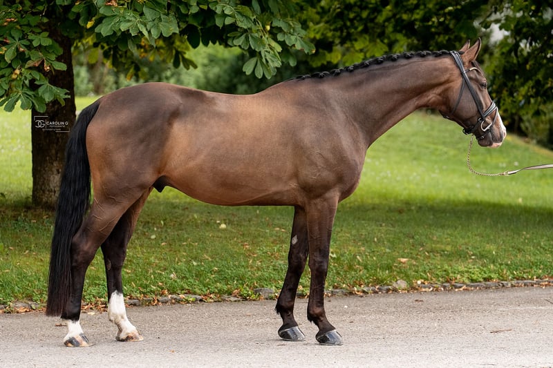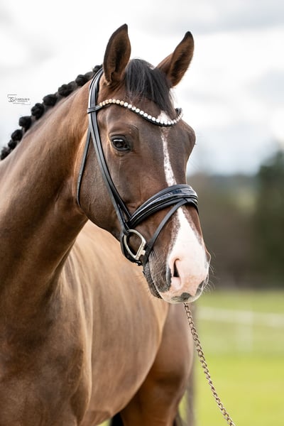 For sale is a beautiful 6-year-old DSP gelding by Escolar x Royal Blend. With his unique markings and a height of 173 cm, he attracts all eyes. He has been successful in riding horse competitions and DPA, and has placed highly in DPL, with particular emphasis on his walk and canter. He is already secure in movements of class M. He is always friendly and approachable, and enjoys small jumps and trail rides for variety. An ideal partner for further training with great rideability and willingness to learn. He is regularly vaccinated, dewormed, and has been seen by the dentist. X-rays from 10/23 are available, including back, neck, and poll. For a video and further information, please contact us at 01573 6205873 or 01511 5323547.