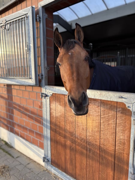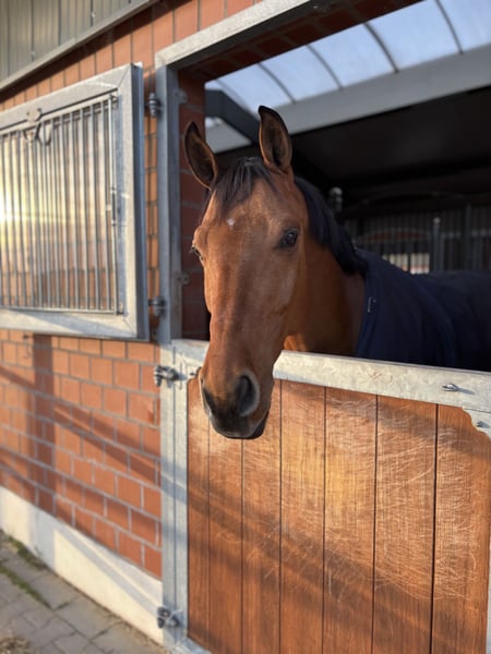 **Verkaufsanzeige: Deutsches Sportpferd** Zum Verkauf steht ein wunderschöner brauner Wallach, geboren im Jahr 2018. Mit einem Stockmaß von 169 cm ist er ein ideales Freizeitpferd sowie Sportpartner für Reiter, die ein zuverlässiges und gutmütiges Tier suchen. Lembrisco hat eine Hausstaub-Allergie/Asthma. Er überzeugt durch sein freundliches Wesen und seine ausgeglichene Art. Er ist sowohl für erfahrene Reiter als auch für Wiedereinsteiger geeignet. Ob im Gelände oder in der Halle, er zeigt sich stets motiviert und kooperativ. .Seine angenehme Gangart und sein charmantes Auftreten machen ihn zu einem tollen Partner für gemeinsame Abenteuer. Bei Interesse oder weiteren Fragen freuen wir uns über Ihre Nachricht!