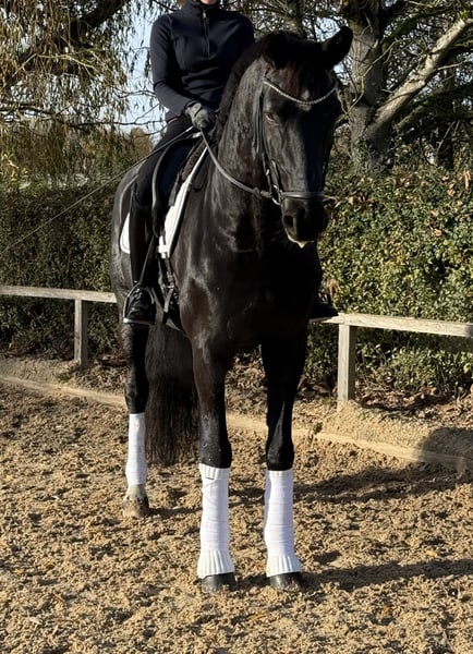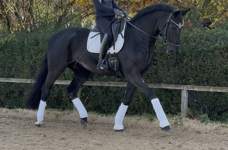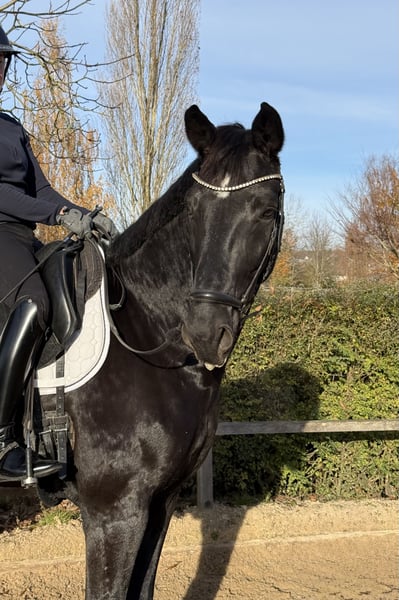 🖤Fürst Rubin🖤 Alter: 7 Jahre (2018) Größe: ca 1,70m Abstammung: Fürst Wilhelm x Weltmeyer Ausbildungsstand: M-Dressur sicher, S Lektionen begonnen Zum Verkauf steht ein wunderschöner 7-jähriger Wallach aus bester Abstammung mit drei sehr guten Grundgangarten. Er überzeugt durch Ausdruck, Qualität und viel Potenzial für den gehobenen Dressursport. Ich habe ihn 3-jährig direkt nach dem Anreiten vom Züchter gekauft und ihn seither schonend ausgebildet. Unter dem Reiter zeigt er sich immer leistungsbereit, lernwillig und sehr anständig. Er hat Dressurpferde A gewonnen, Dressurpferde L hoch platziert, bei wenigen Starts. Er beherrscht alle Lektionen der Klasse M, geht sehr gute fliegende Wechsel. Pirouetten und Serienwechsel wurden gerade begonnen und auch hier zeigt er viel Talent. Er geht auch gern ins Gelände und hat Spaß an kleinen Sprüngen, wurde aber nicht weiter gefördert. Im Umgang ist er äußerst unkompliziert, sehr menschenbezogen, freundlich und angenehm im täglichen Handling. Er geht mit einem anderen Wallach gemeinsam aufs Paddock und ist natürlich Schmiede- und Verladefromm. Ein echtes Zukunftspferd mit Perspektive für das große Viereck, ganz besonders interessant für Junioren. AKU wurde 3-jährig gemacht, ohne Befund, seither war er nie verletzt. Tel.: 01573/6240804