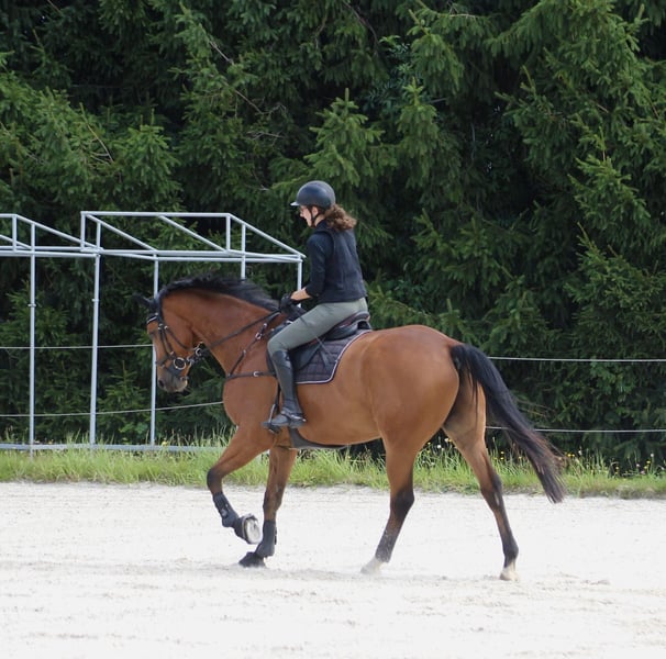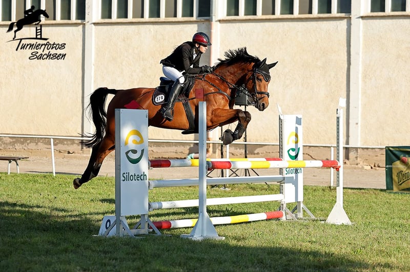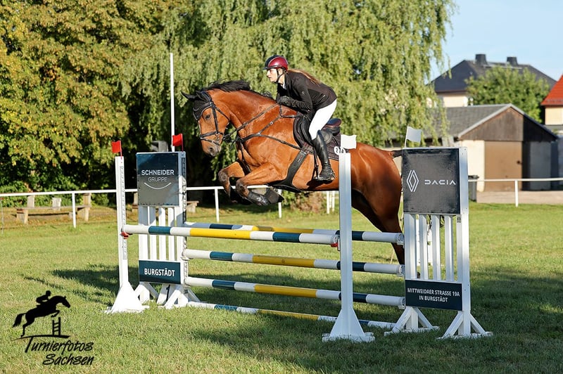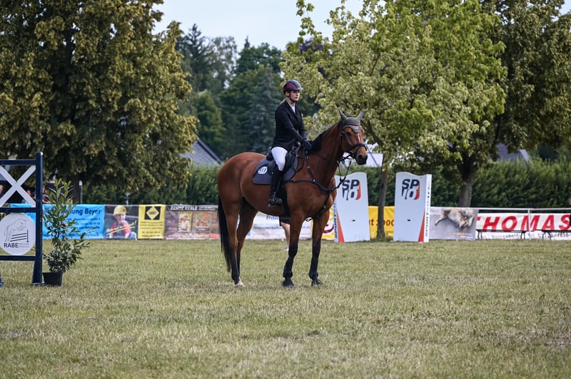Zum Verkauf steht ein bildschöner 8-jähriger Wallach. Prinz Albert ist ein Deutsches Sportpferd abstammend von Prinz Ludwig x Glacier. Er hat ein Stockmaß von ca. 177cm. Er ist A**-Springen platziert und L-fertig. Er ist Schmiede- und Verladefromm, geimpft und die Zähne wurden regelmäßig kontrolliert. Er wurde mehrmals bei der Osteopathin und beim Sattler vorgestellt. TÜV ohne Befund von Oktober 2024 ist vorhanden und kann natürlich auf Wunsch zugesendet werden. In der täglichen Arbeit ist er neugierig und sehr brav. Joggen an der Hand, Kühe, Schafe, Hunde und klappernde Fahrzeuge wie z.B. Traktoren kennt er und hat damit keine Probleme. Er ist in der dressurmäßigen Arbeit gut zu reiten und beherrscht A-Lektionen, sowie einige L-Lektionen. Er kennt die Longe und wurde von uns langsam an die Doppellonge herangeführt (braucht da noch etwas Übung). Beim Springen ist er mit genügend Go ausgestattet und ist von fortgeschrittenen Reitern problemlos zu reiten. Er ist nicht guckig und springt jegliche Unterbauten inklusive Wassergraben ohne Probleme. Auf dem Turnier und beim Auswärtstraining zeigt er sich, wie sonst auch arbeitswillig. Er lässt sich mit anderen Pferden und auch allein problemlos verladen. Wir waren mit ihm sehr oft in einer Gruppe und auch allein im Gelände, dort erweist er sich als absolutes Verlasspferd, auch unter einem unerfahreneren Reiter. Deswegen könnte ich ihn mir auch sehr gut als zuverlässigen Partner für den gehobenen Freitzeitreiter vorstellen. Prinz ist gut sozialisiert. Er versteht sich sowohl mit Wallachen als auch mit Stuten und fährt auch mit fremden Pferden sehr entspannt Hänger. Er steht bei uns aktuell im Offenstall, kennt aber auch die Boxenhaltung. Aufgrund einer Verletzung meinerseits wurde er dieses Jahr leider kaum auf Turnier vorgestellt. Gesprungen wurde er in den letzten Monaten von einer Bekannten. Aktuelle Videos aus dem Training stelle ich Ihnen auf Anfrage gern zur Verfügung. Er wird inklusive Trense (nicht mal ganz ein Jahr alt) verkauft. Sie haben Interesse? Dann können wir gern einen Termin zum Probereiten vereinbaren. Melden Sie sich gern per WhatsApp oder Anruf unter 0157 85922936.