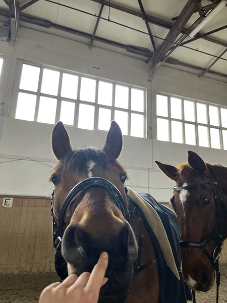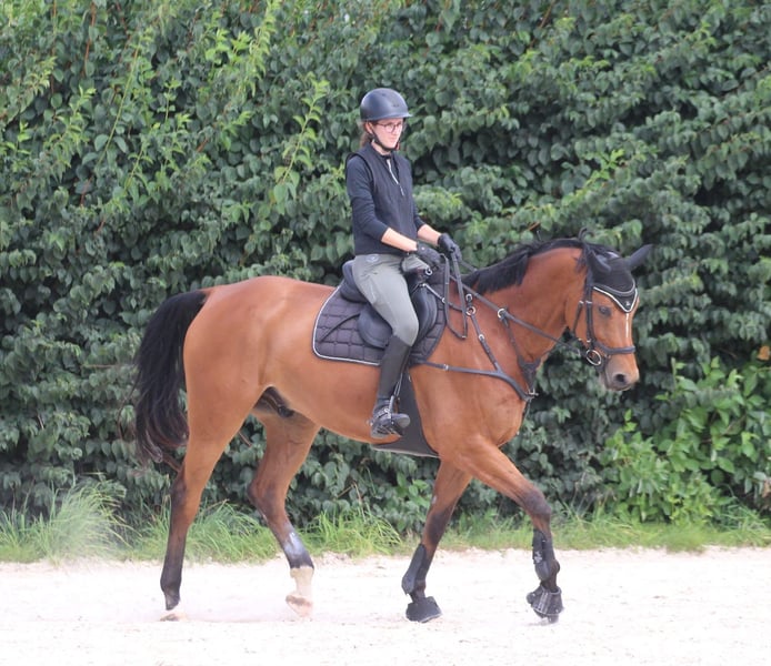 Te koop is een prachtige 8-jarige ruin. Prins Albert is een Duits Sportpaard, afstammend van Prins Ludwig x Glacier. Hij heeft een schofthoogte van ongeveer 177 cm. Hij is geplaatst in A**-springen en is L-klaar. Hij is hoefsmid- en laadvriendelijk, gevaccineerd en zijn tanden zijn regelmatig gecontroleerd. Hij is meerdere keren bij de osteopaat en de zadelmaker geweest. Een TÜV zonder bevindingen van oktober 2024 is aanwezig en kan op verzoek natuurlijk worden toegestuurd. In het dagelijks werk is hij nieuwsgierig en zeer braaf. Hij kent joggen aan de hand, koeien, schapen, honden en rijdende voertuigen zoals bijvoorbeeld tractoren en heeft daar geen problemen mee. Hij is goed te rijden in de dressuur en beheerst A-oefeningen, evenals enkele L-oefeningen. Hij kent de longe en is door ons langzaam aan de dubbele longe geïntroduceerd (heeft daar nog wat oefening nodig). Bij het springen heeft hij voldoende go en is hij probleemloos te rijden door gevorderde ruiters. Hij is niet kijkerig en springt alle hindernissen, inclusief waterbakken, zonder problemen. Op wedstrijden en bij buitenritten toont hij zich, zoals altijd, bereidwillig. Hij laat zich met andere paarden en ook alleen probleemloos laden. We zijn met hem vaak in een groep en ook alleen in het terrein geweest, waar hij zich als een absoluut betrouwbaar paard bewijst, ook onder een minder ervaren ruiter. Daarom kan ik me hem ook heel goed voorstellen als een betrouwbare partner voor de gevorderde recreatieruiter. Prins is goed gesocialiseerd. Hij komt zowel goed overweg met ruinen als met merries en reist ook ontspannen met vreemde paarden in de trailer. Hij staat momenteel bij ons in een open stal, maar kent ook de boxhouding. Vanwege een blessure van mijn kant is hij dit jaar helaas nauwelijks op wedstrijden gepresenteerd. In de afgelopen maanden is hij door een bekende gesprongen. Actuele video's van de training stel ik u graag op aanvraag beschikbaar. Hij wordt verkocht inclusief hoofdstel (nog geen jaar oud). Heeft u interesse? Dan kunnen we graag een afspraak maken voor een proefrit. U kunt me gerust bereiken via WhatsApp of een telefoontje op 0157 85922936.