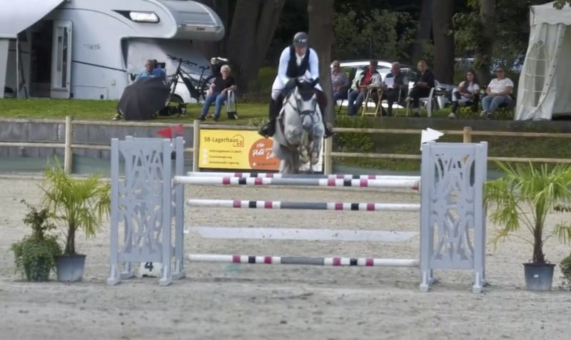 Na sprzedaż wystawiamy obiecującego, już plasującego się na poziomie M** 7-letniego ogiera z potencjałem do dalszych zadań. Zachwyca wysoką podstawową jazdnością, zdolnościami do nauki oraz ostrożnością przy skokach. Dzięki temu odniósł sukcesy zarówno w konkursach do poziomu M**, jak i liczne zwycięstwa z wysokimi ocenami do skoków na poziomie M**. Ponadto, wyróżnia się pięknym, kompaktowym wyglądem. Na co dzień jest bardzo spokojny i zawsze chętny do żartów. Jego wesoła i przyjazna dla ludzi osobowość sprawia, że jest to koń, którego chętnie się ma w swoim otoczeniu. Dolittle poszukuje jeźdźca lub jeźdźczyni, który/a będzie dalej rozwijać jego talenty i czerpać radość z jego dalszego rozwoju. Chce znaleźć kochający, prywatny dom. Sprzedaż jest spowodowana prywatnymi powodami. W przypadku zainteresowania prosimy o kontakt pod numerem telefonu: +49 151 14558309