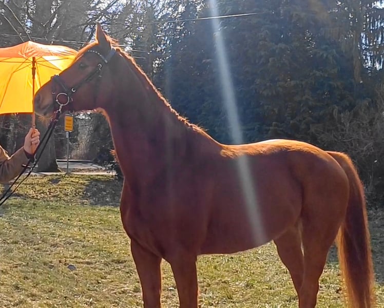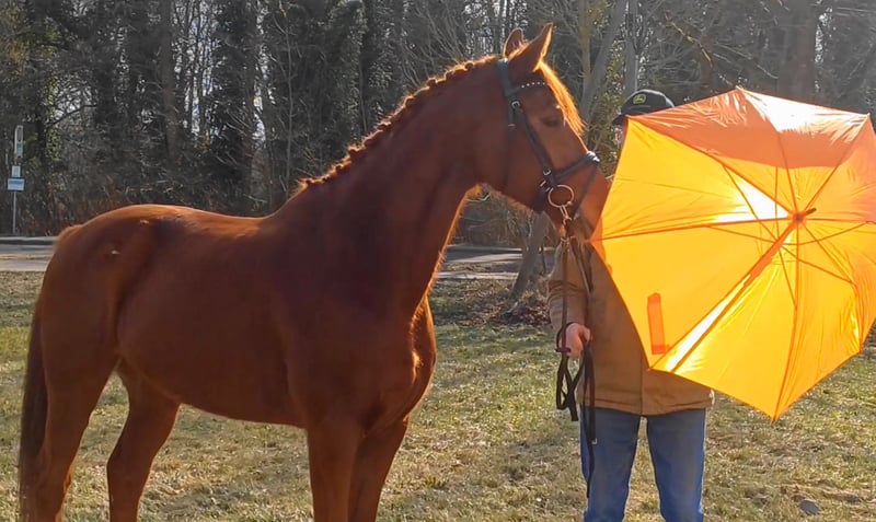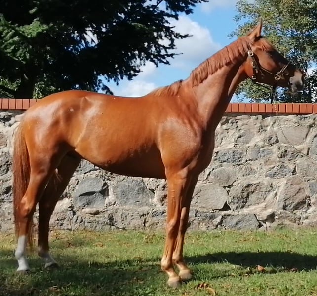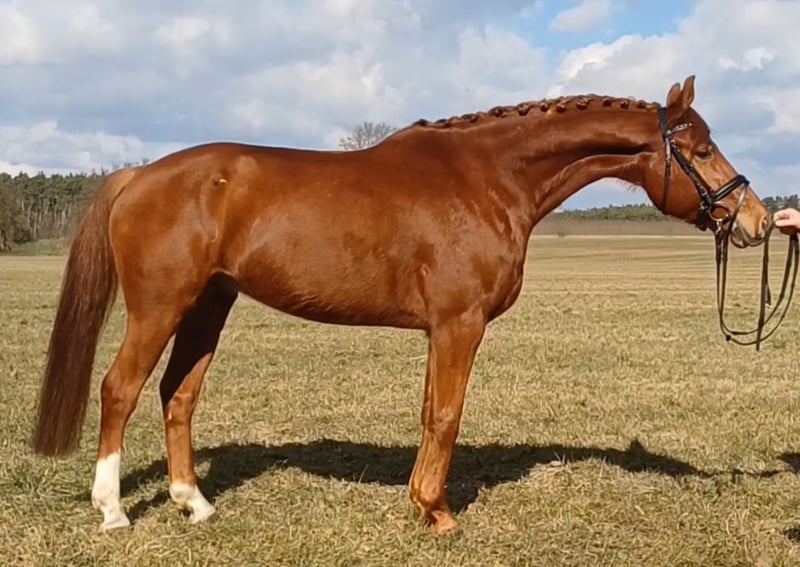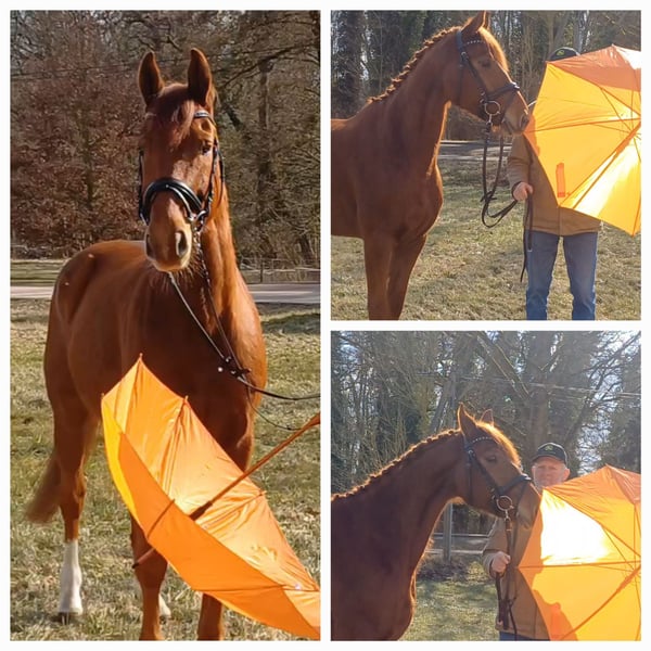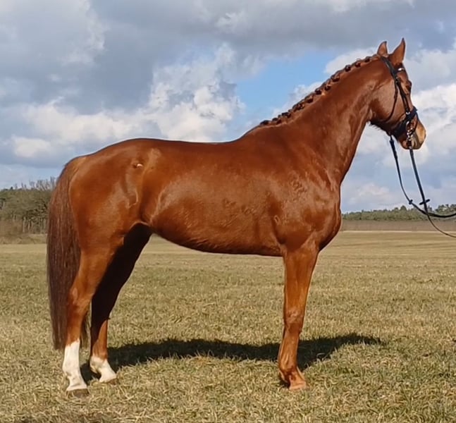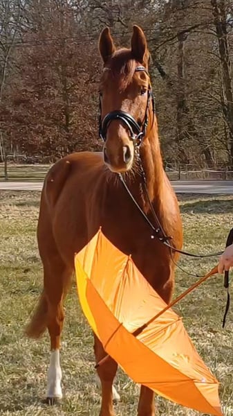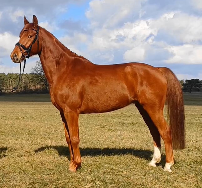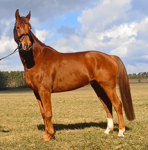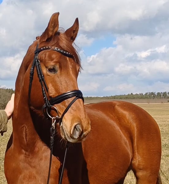 Unser Excalibur SB kommt im praktischen XS-Format daher, aber hat ein großes Herz an der richtigen Stelle! Freundlich, mutig und seinen Menschen stets treu - so ist der kleine Mann. Excalibur wurde 2023 spät angeritten und befand sich über den Jahreswechsel 2025/2026 zur weiteren Ausbildung im Brandenburgischen Haupt- und Landgestüt in Neustadt/Dosse. Da er auf einem Bauernhof geboren wurde und aufgewachsen ist, sind Maschinen wie Traktoren, Hoflader, Mini-Bagger bis hin zu Laubbläsern absoluter Alltag für ihn. Er ist dabei aufgeschlossen und beobachtet das Geschehen mit totaler Gelassenheit. Der alltägliche Umgang mit Menschen ist für Excalibur eine Freude. Er ist immer freundlich, unkompliziert und lässt sich gern ein Leckerchen reichen. Seine Koppel lag direkt neben einer Hundeschule, sodass dies für ihn absolute Routine ist. Auch Hühner aus dem benachbarten Garten sind kein Problem. Unser Excalibur mag die Gesellschaft von anderen Pferden und ist diese sein Leben lang gewohnt. So war er Weidebegleiter für verschiedene Wallache, u.a. auch einem Rentner, und hatte im Stall auch seine Pferdebox zwischen den Boxen von jungen Hengsten und Jährlingsstuten. Trotz seiner kompakten Größe lässt er sich nicht die Butter vom Brot nehmen, zeigt aber dennoch immer eine soziale Größe in dem er Schwächere beschützt. Sein Vater ist der Trakehner PrH Editorial. Editorial war der Reservesieger der Trakehnerkörung 2007. Die Nachkommen dieses Hengstes zeichnen sich durch viel Typ, überdurchschnittliche Grundgangarten und ein sehr gutes Interieur aus. Halbbruder von Editorial ist Imperio, der unter Hubertus Schmidt hoch erfolgreich war. Excalibur stammt aus einer Mutterlinie, die auf unsere Maika zurück führt. Die Pferde aus dieser Linie zeichnen sich sowohl im Sport- als auch im Freizeitbereich durch einen sehr guten Charakter und ihre vielseitige Einsatzbandbreite aus. So sind z.B. Lord Capri SB (S-platziert in der Dressur) oder Sabrina SB (Sportname Sabrina-Vera, siegreich in der Dressur M**) hervorzuheben. Sowie ein Santano SB, der sowohl vor der Kutsche aber auch als Voltigierpferd punkten konnte. Seine jüngere, größere Schwester ist die Staatsprämienstute Belissima SB. Aufgrund seines hohen Blutanteils der Trakehner, aber auch Vollblut (Montano - Modus xx) verfügt Excalibur über einen eleganten, leichten Typ mit bester Kondition für Strecken. Matsch und co. sind kein Problem und stören ihn nicht.