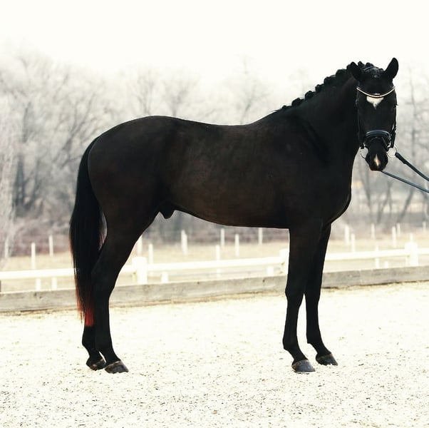 This 8-year-old black gelding is a true exceptional horse – not only under saddle but also in daily handling. He combines athletic quality, impressive rideability, and striking beauty – including a charming white heart on his forehead. However, what makes him truly special is his outstanding character, making him a real lifesaver on four hooves. His reliability, nerve strength, and fine sensitivity to the rider provide an exceptionally secure riding experience – in every situation. Whether in the arena, on the field, during trail rides, or in everyday life: he is trustworthy. What fascinates me the most is his enormous eagerness to learn and his willingness to develop further every day. He approaches new lessons with curiosity and ease, always remaining motivated, focused, and cooperative. His relaxation and fine connection make daily work with him a pleasure. With three very good, rhythmic basic gaits, he offers the best prerequisites for advanced dressage sport. He has already been successful multiple times in dressage horse tests of class M and is currently trained up to class S, making him perfect for ambitious juniors, those transitioning from ponies to large horses, or riders looking for a correctly trained, reliable, and easy-to-ride partner. Due to his character and exceptional rideability, he would also be suitable for beginners. He also shows talent and joy in jumping – but has not yet been promoted in competitions. With his clear rideability, calm temperament, and the high level of trust he conveys, he is a true soulmate – and an investment in many carefree years in the saddle. Only to the very best hands!! Quality over price!! Further videos, information, and photos available upon request. Trial rides possible at any time.