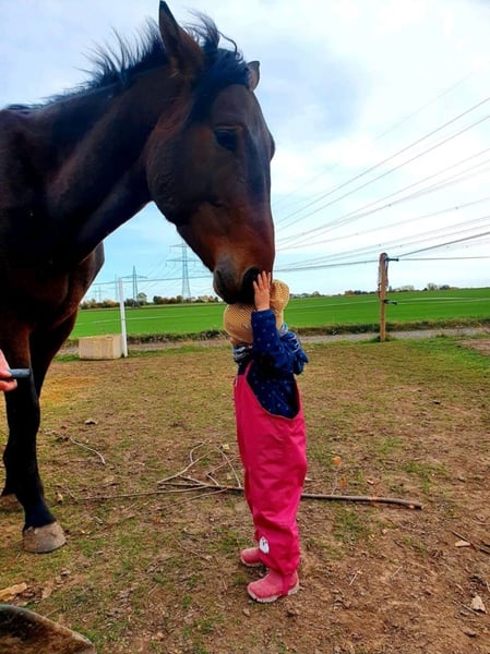 Un caballo de 8 años, yeguo, de deporte alemán, de aproximadamente 1,70 m de altura, busca un nuevo entorno para desarrollar su potencial. Spirit es un potro joven, que ha sido ligeramente iniciado en la monta. Conoce el paso y el trote bajo el jinete, tanto en la cuerda como en libertad en el círculo. Debido a un embarazo, no monté en él desde marzo. Hasta ahora, no ha mostrado ninguna mala conducta bajo la silla. Actualmente, ha sido trabajado muy poco o casi nada, por lo que necesita algo de desarrollo muscular antes de que un jinete pueda volver a montarlo. Spirit quiere agradar y es un caballo con ganas de aprender y de trabajar. Está criado en la disciplina de doma clásica, pero también disfruta saltar (aunque necesita volver a ser introducido en el salto, inicialmente en libertad, sin jinete). Spirit se desplaza descalzo y ha sido revisado regularmente por el herrero. No es su actividad favorita cargar en remolque, aunque esto se debe más a falta de interés que a miedo. Se siente más cómodo en el paddock, pero también está acostumbrado a estar en box durante la noche. Los paseos en solitario no son un problema. Spirit ha demostrado tolerancia a cruzar puentes (que no sean de madera), pasar por debajo de puentes de autopista, a los perros, vacas, otros caballos en las paddocks, ciclistas, niños en patinetes, cochecitos, tractores, trenes y muchas otras situaciones. Para más preguntas o vídeos, no dudes en contactarnos.